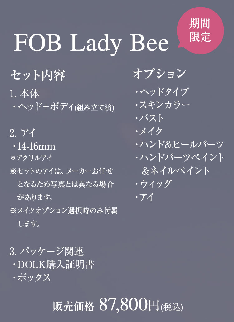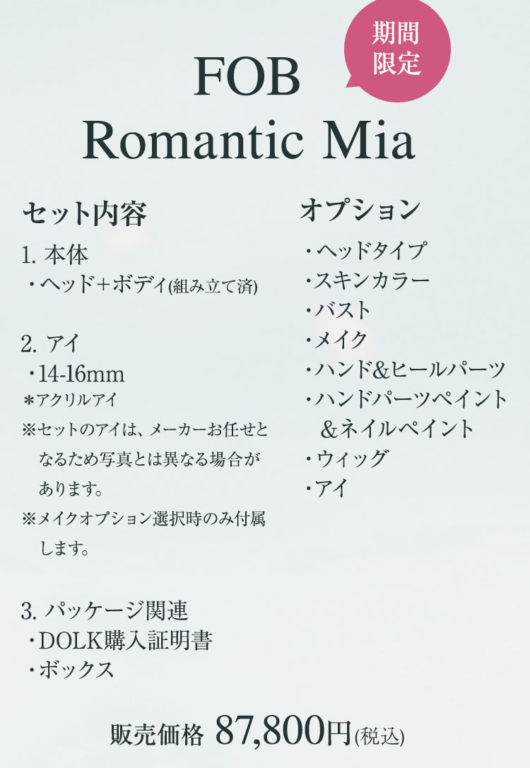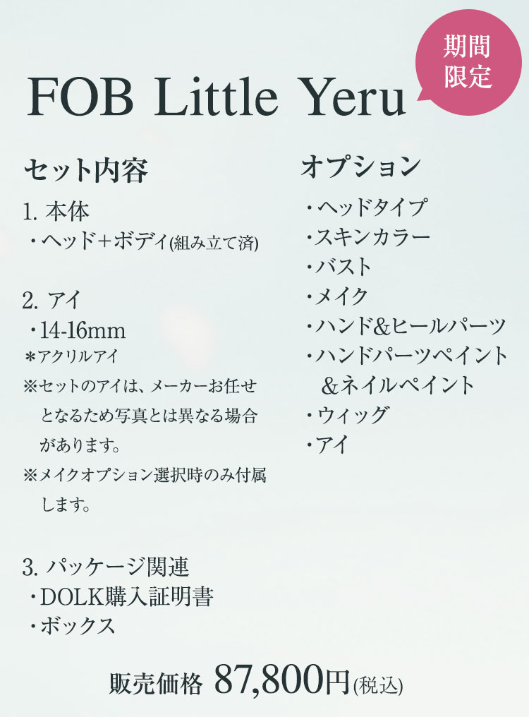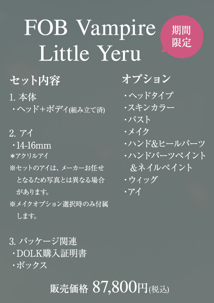 The 40cm class FOB dolls, known for their lovely design, are back again! Individual FOB head parts, including the popular Vaipire head, have also been reissued, and makeup is also available. We are currently offering a free random head part for customers who purchase three or more FOB dolls or FOB head parts! The order period is until (Sun), December 15th, so if you've been interested in Peak's Woods, don't miss out!