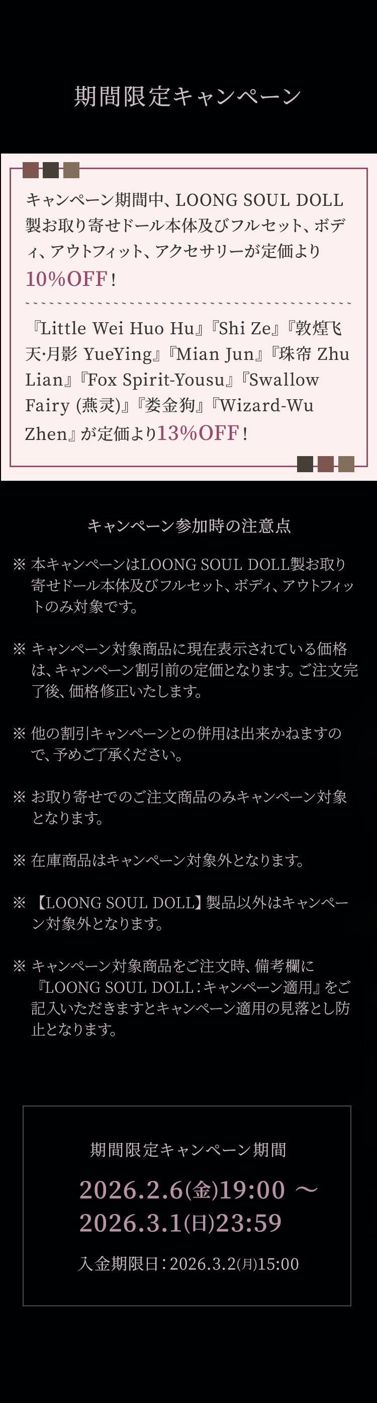 LOONG SOUL DOLL 期間限定キャンペーン