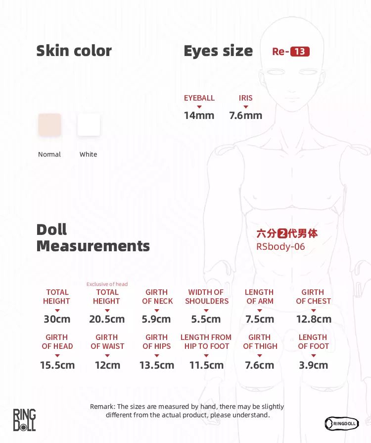 | RSbody-06 Boy | 26.5 | 16 | 5.9 | 5.5 | 12.8 | 12 | 13.5 | 7.5 | --- | 11.5 | --- | 3.9 | --- | 6~7 | 14 |