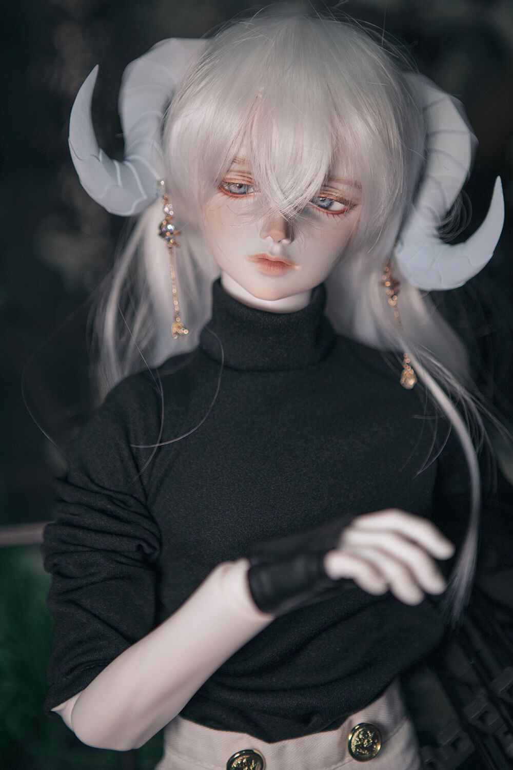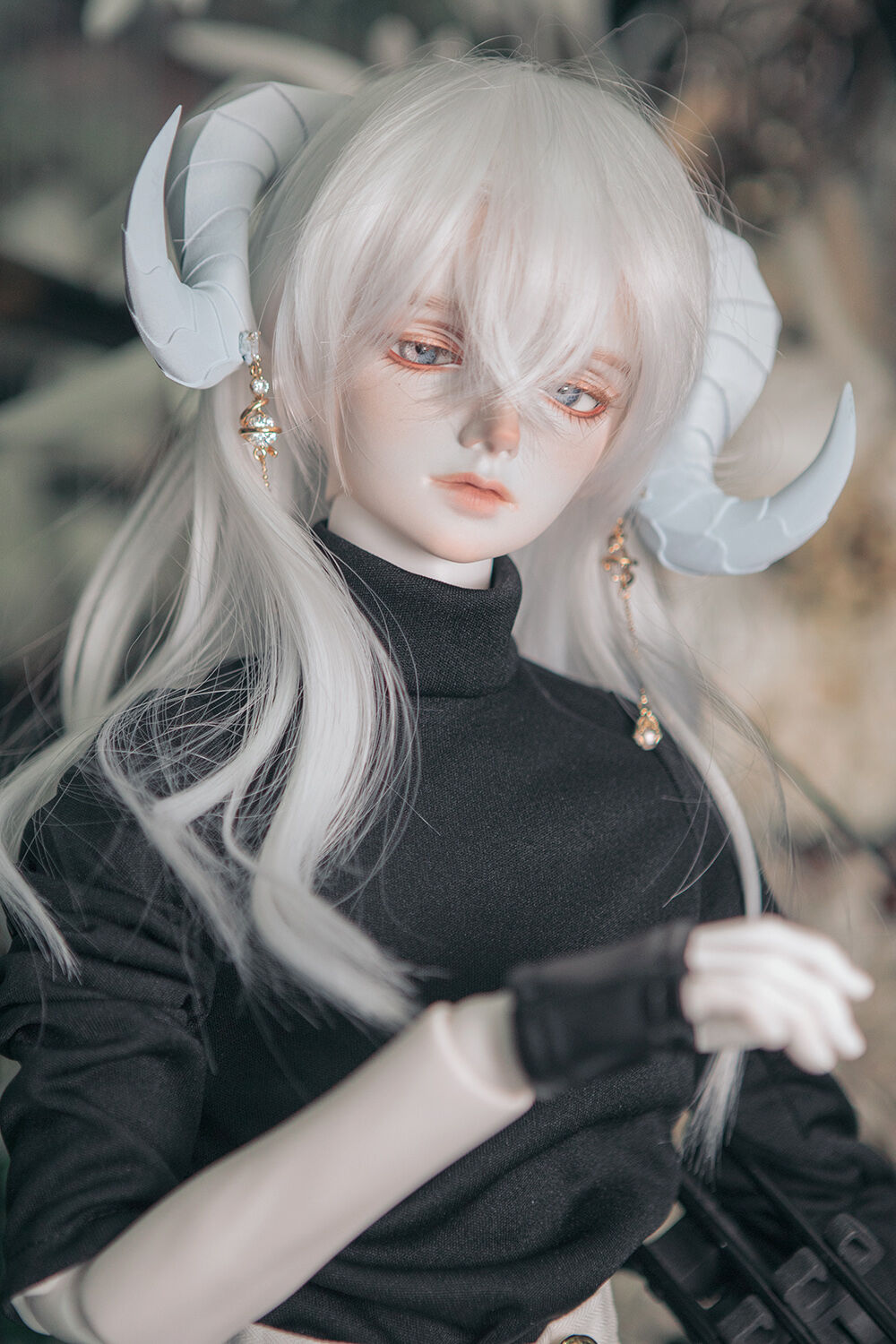True to the concept of "a knight who possesses the duality of stillness and motion," the glitter color applied over a pale coral pink creates a pale yet elegant beauty reminiscent of the upper class. The horns that make up the fantastical worldview are finished with a pale blue gradation, giving it a pure impression. The "horns" are intricately hand-painted and come with beautiful makeup by Kennel.