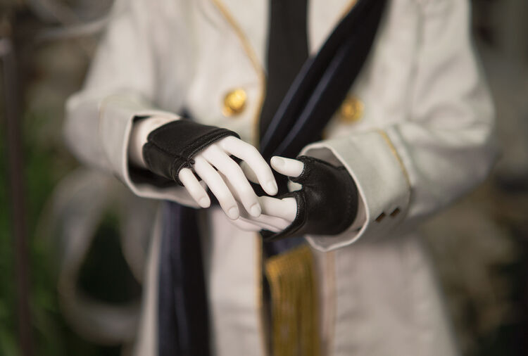 The figure comes with a white and gold surcoat with a modern design that retains the style of the Middle Ages, as well as a sash that can be worn like a scarf. The gauntlet-like gloves that add a stylish touch to the outfit are made to fit Gloomy Demetri's palm perfectly.