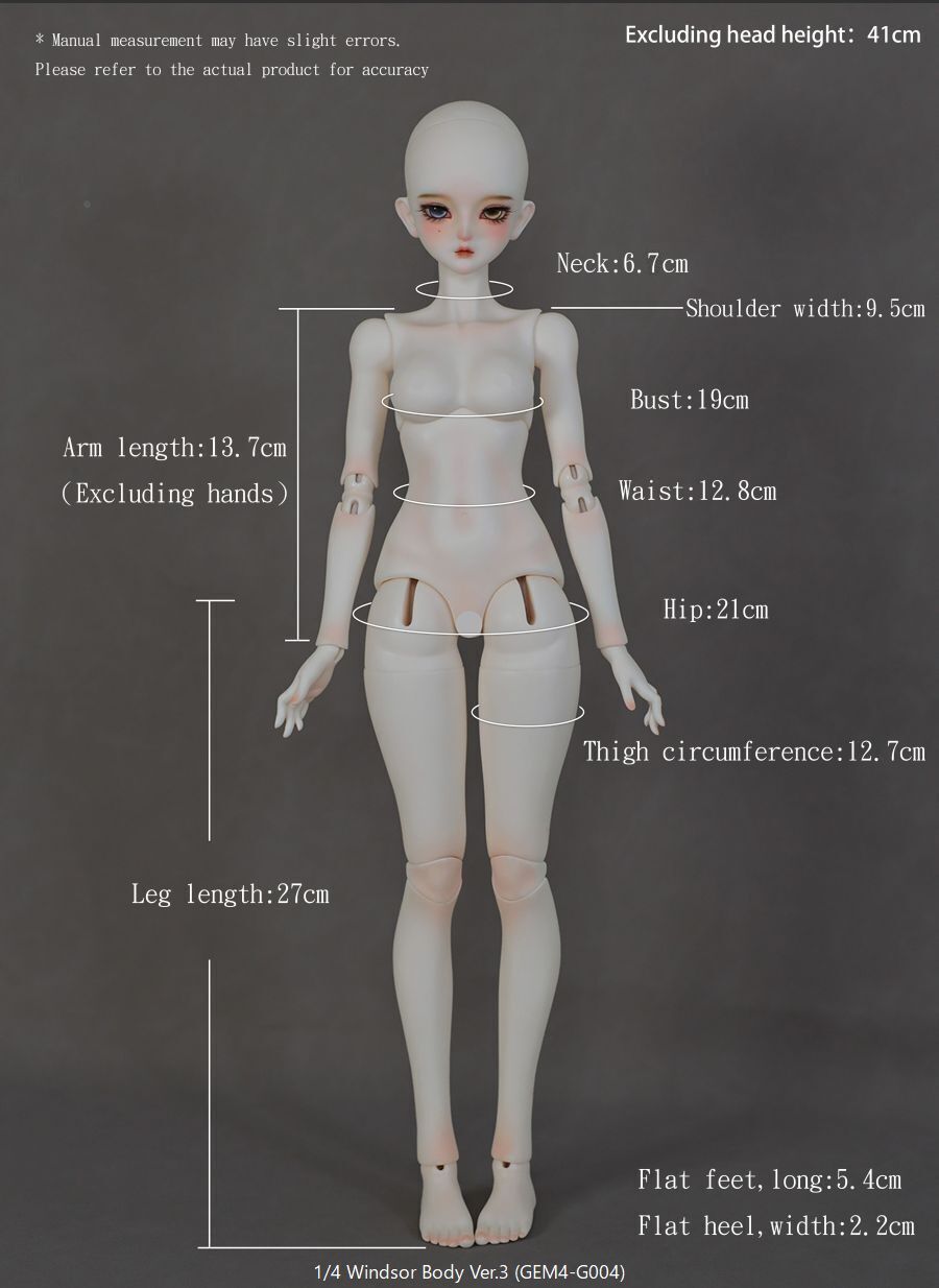 | 1/4 Girl 004 Broad: Middle chest (warm body straight shoulder version) | 45.5 | 18 | 6.7 | 9.5 | 19 | 12.8 | 21 | 13.7 | --- | 27 | 12.7 | 5.4 | 2.2 | 7~8 | 14 |
