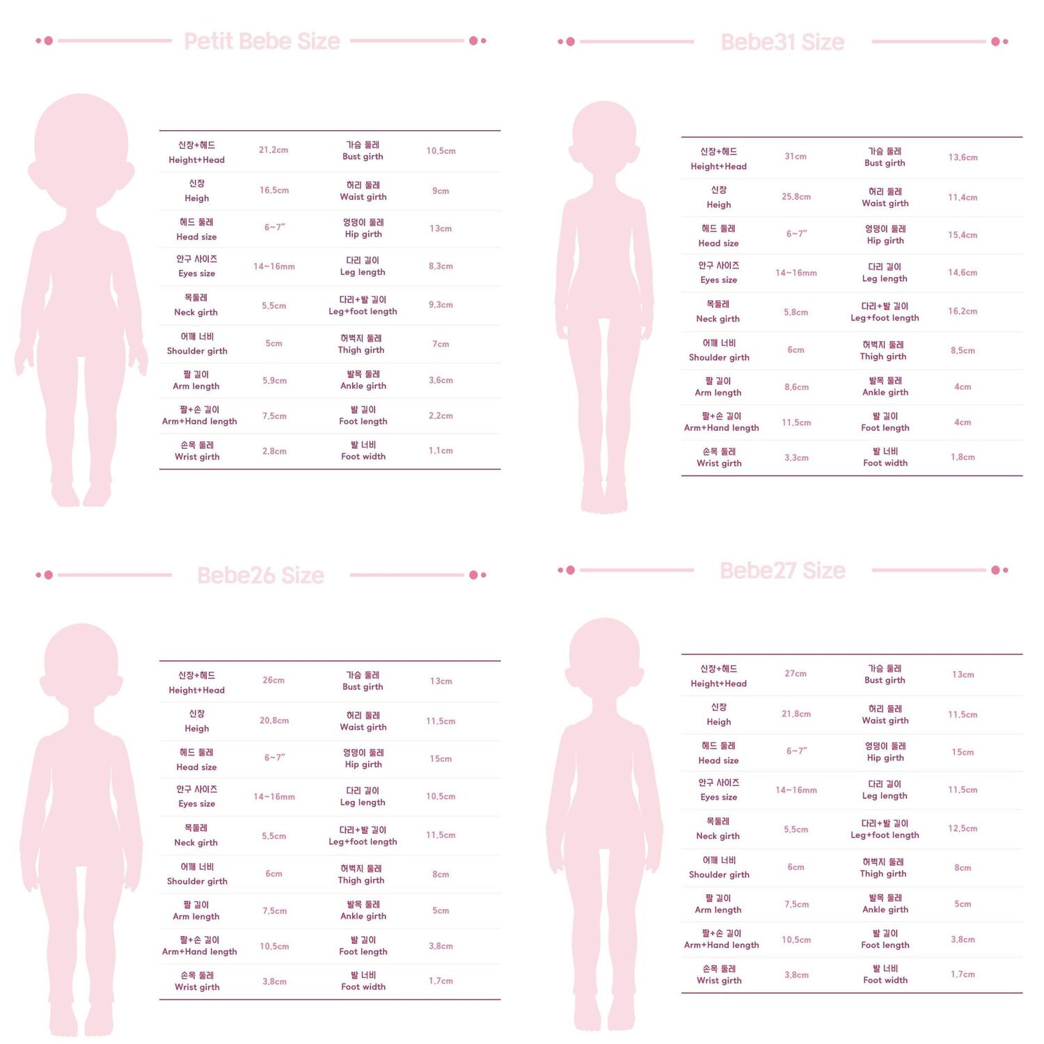 Note: All sizes are based on official maker data. Actual dolls and items may vary slightly due to individual differences.