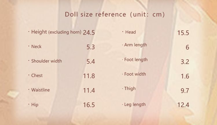 Note: All sizes are based on official maker data. Actual dolls and items may vary slightly due to individual differences.