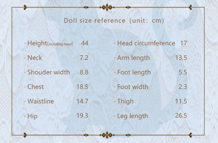 Note: All sizes are based on official maker data. Actual dolls and items may vary slightly due to individual differences.