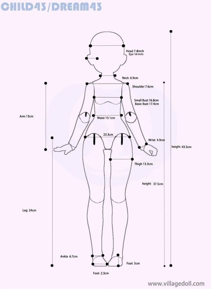 | 43cm Girl Ver.2: M | 43.5 | 21 | 6.9 | 7.6 | 17.4 | 13.1 | 22.5 | 13 | 4.9 | 24 | 13.3 | 5.8 | 2 | 8~9 | 18 |