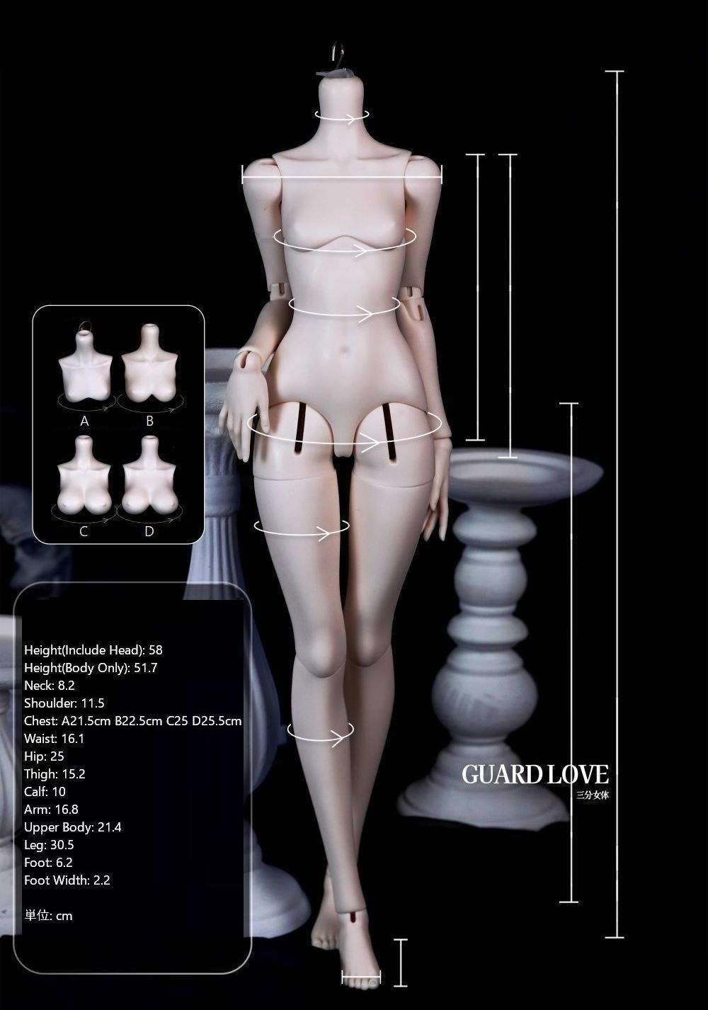 | 1/3 Girl Ver.1: D | 58 | 21.9 | 8.2 | 11.5 | 25.5 | 16.1 | 25 | 16.8 | --- | 30.5 | 15.2 | 6.2 | 2.2 | 8~9 | 20 |
