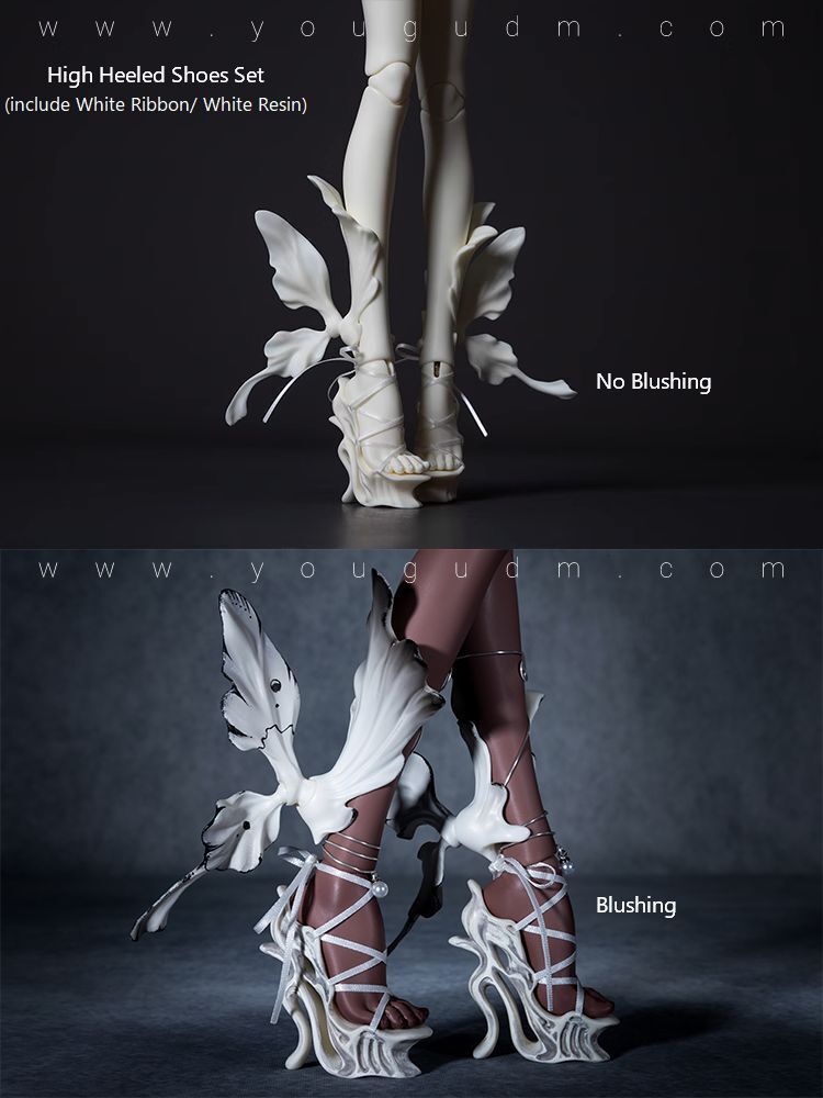 High Heeled Shoes Set (White Ribbon, White Resin)