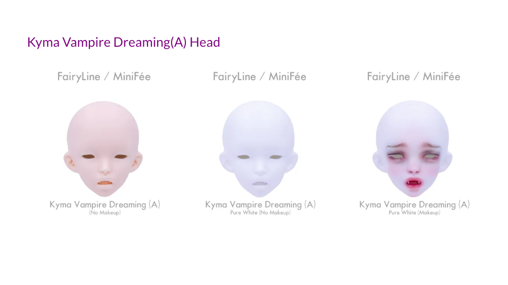 The head parts (Kyma Vampire Dreaming (A)) and additional heads all have the same color skin as the doll.