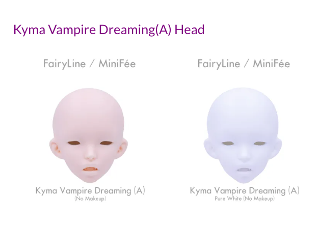 The head parts (Kyma Vampire Dreaming (A)) and additional heads all have the same color skin as the doll.