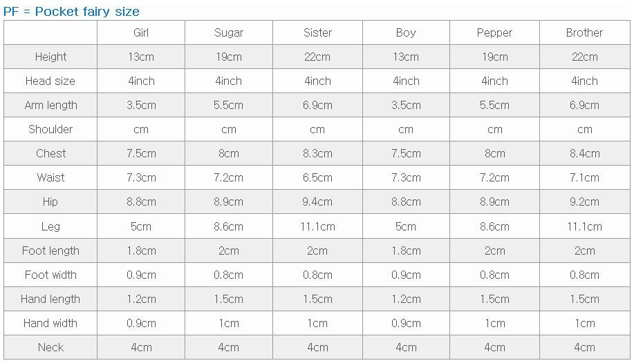 Note: All sizes are based on official maker data. Actual dolls and items may vary slightly due to individual differences.