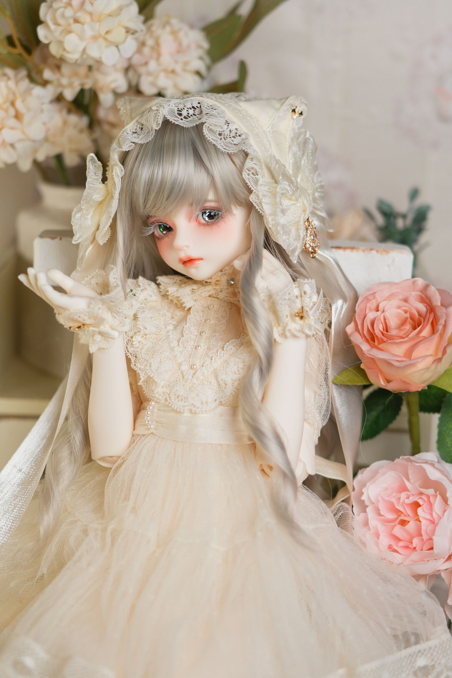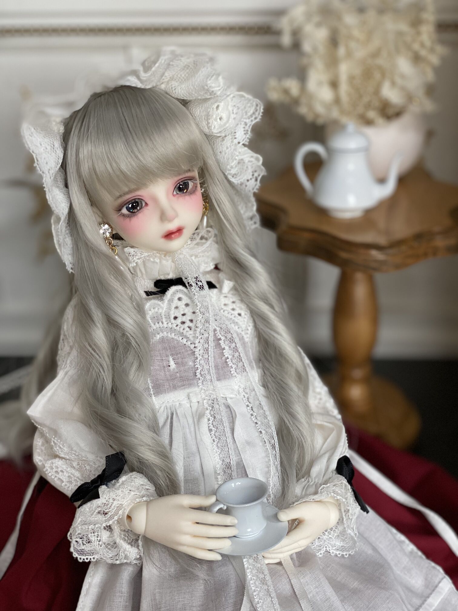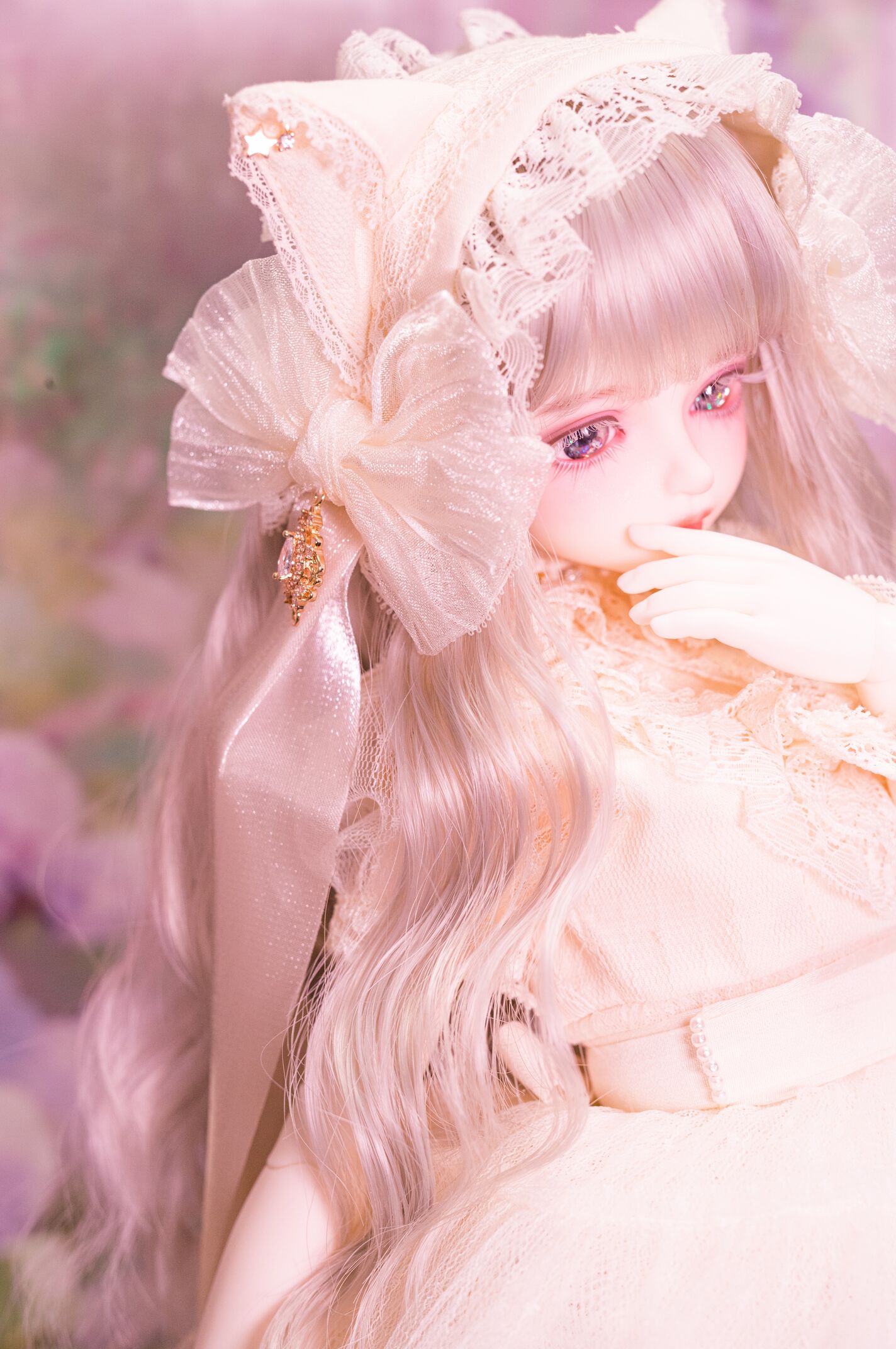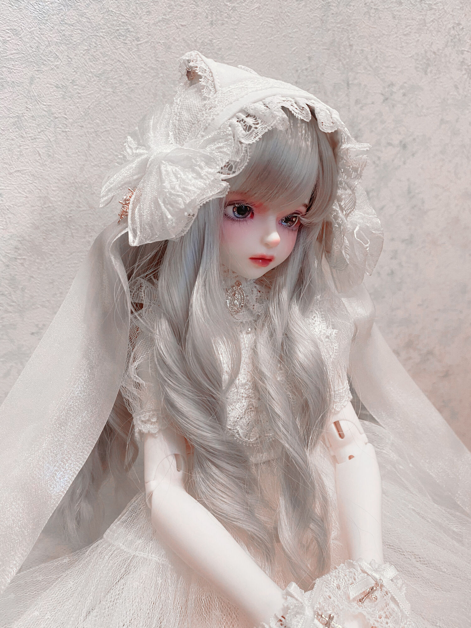 The exquisite lace and beautiful silhouette that accentuates the doll's body create a stunning finish. The cute cat ear head dress has a long, delicate ribbon that can be tied or left untie.