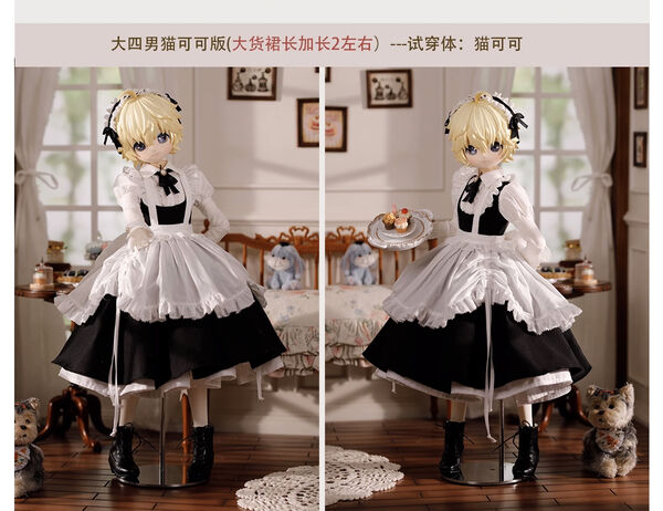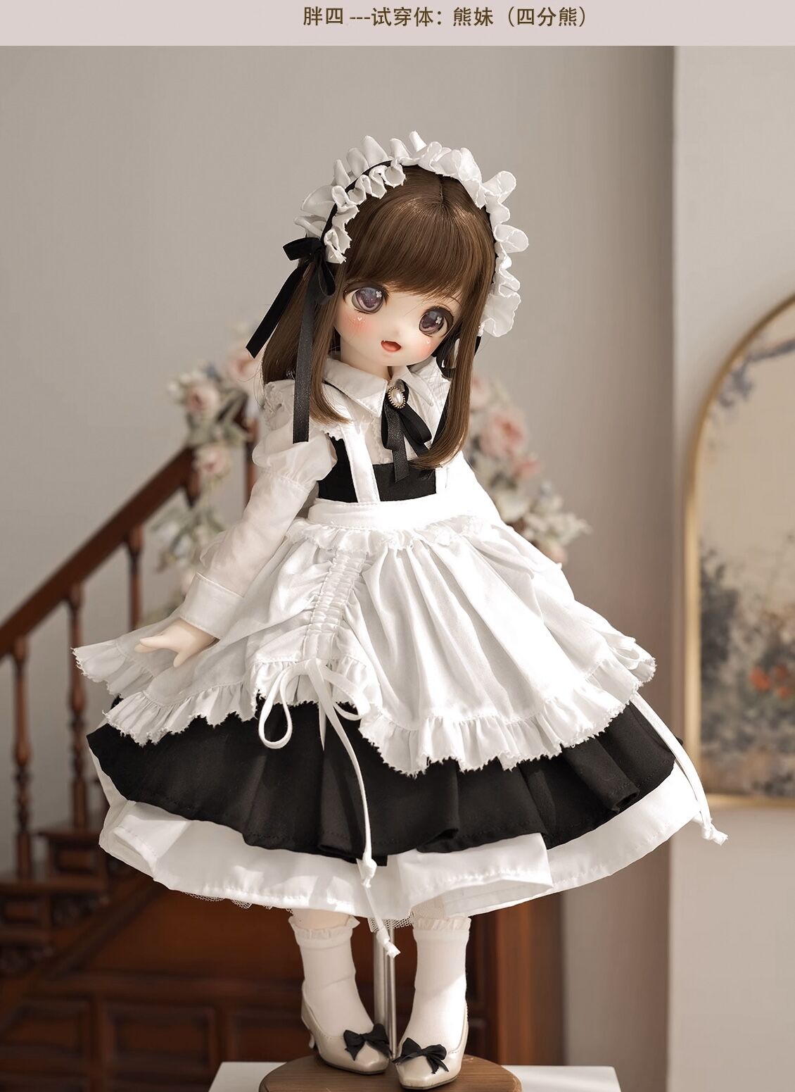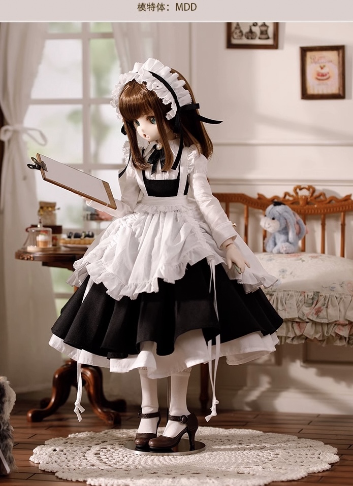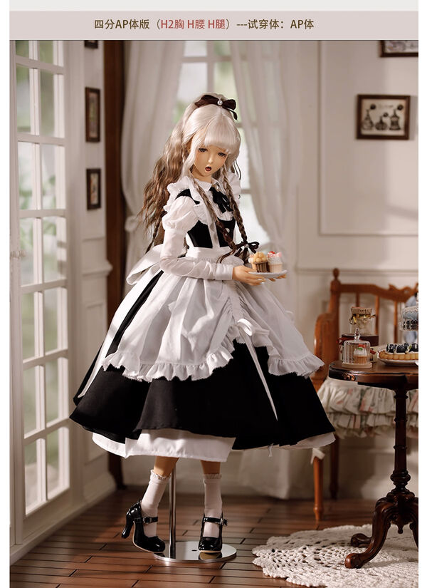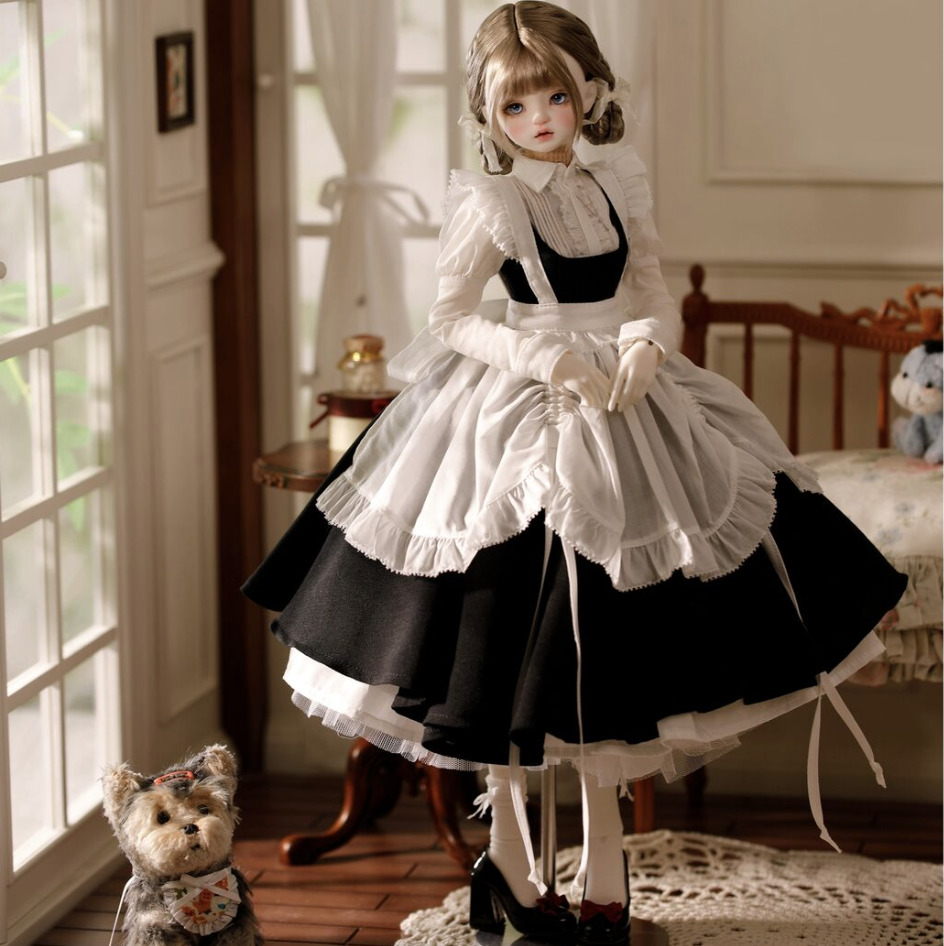 This extremely popular maid outfit is packed with the designer's aesthetics, with frills and fabrics carefully selected to match the doll size scale, and a carefully calculated tailoring that creates a silhouette that beautifully flatters the doll body.