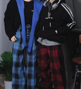 Checkered pants: red and black (fits sizes 70cm and 73cm)