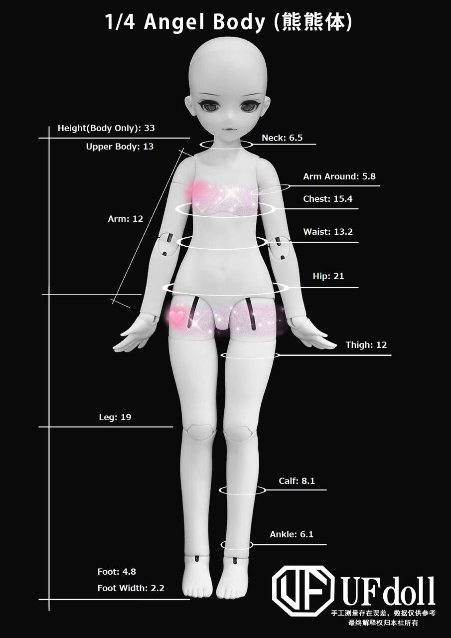 | 1/4 Kuma Kuma Body (Angel Body) | 39 | 18.5 | 6.5 | 7.5 | 15.4 | 13.2 | 21 | 12 | --- | 19 | 12 | 4.8 | 2.2 | 9~10 | 23 | |