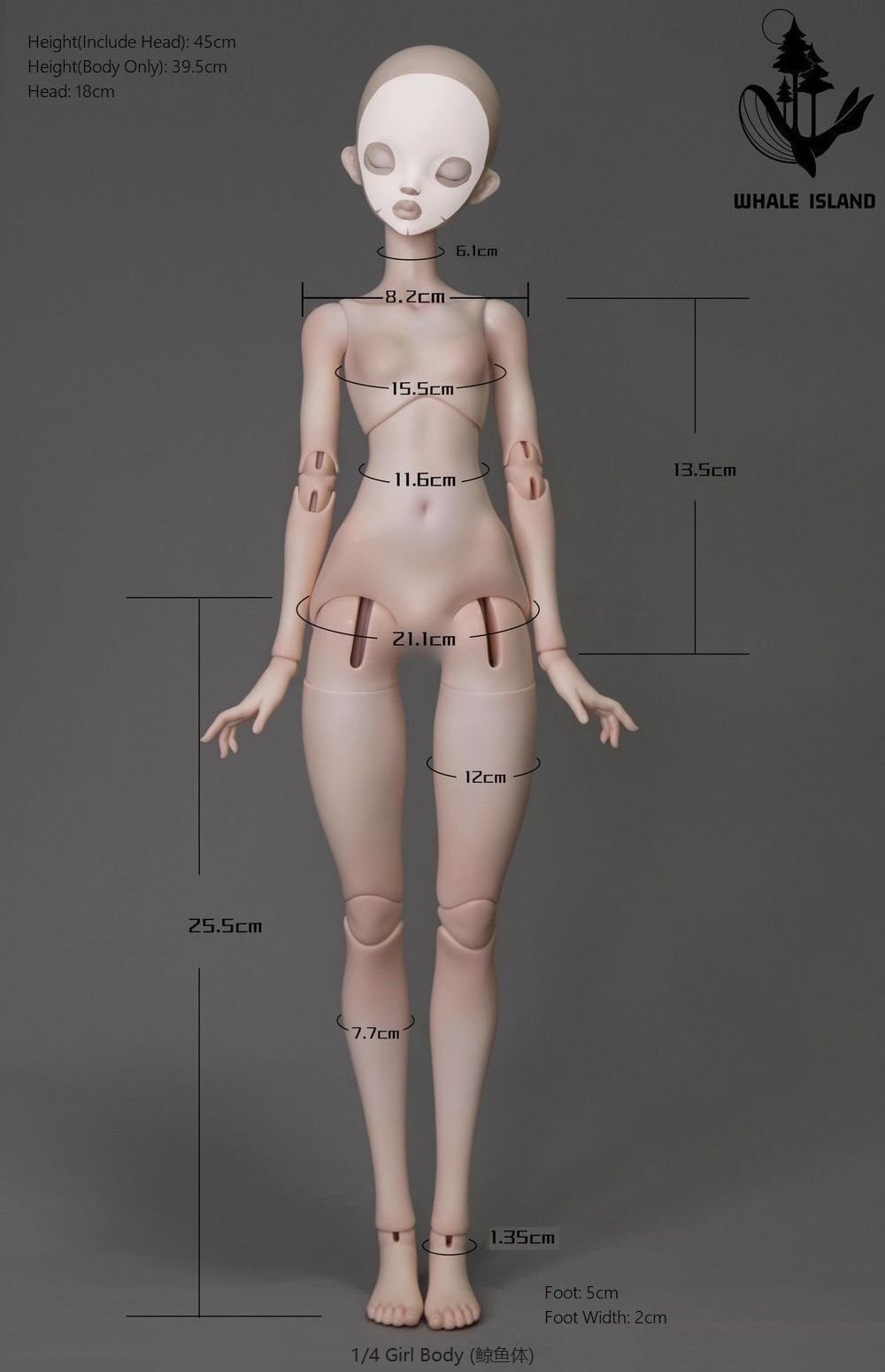| 1/4 Girl(whale body): Small bust | 45 | 18 | 6.1 | 8.2 | 15.5 | 11.6 | 21.1 | 13.5 | --- | 25.5 | 12 | 5 | 2 | 7~8 | 12~14 | |