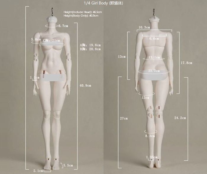 | 1/4 Girl(whale body): Small bust, Wide | 45 | 18 | 6.1 | 9 | 15.5 | 11.6 | 21.1 | 13.5 | --- | 25.5 | 12 | 5 | 2 | 7~8 | 12~14 | |