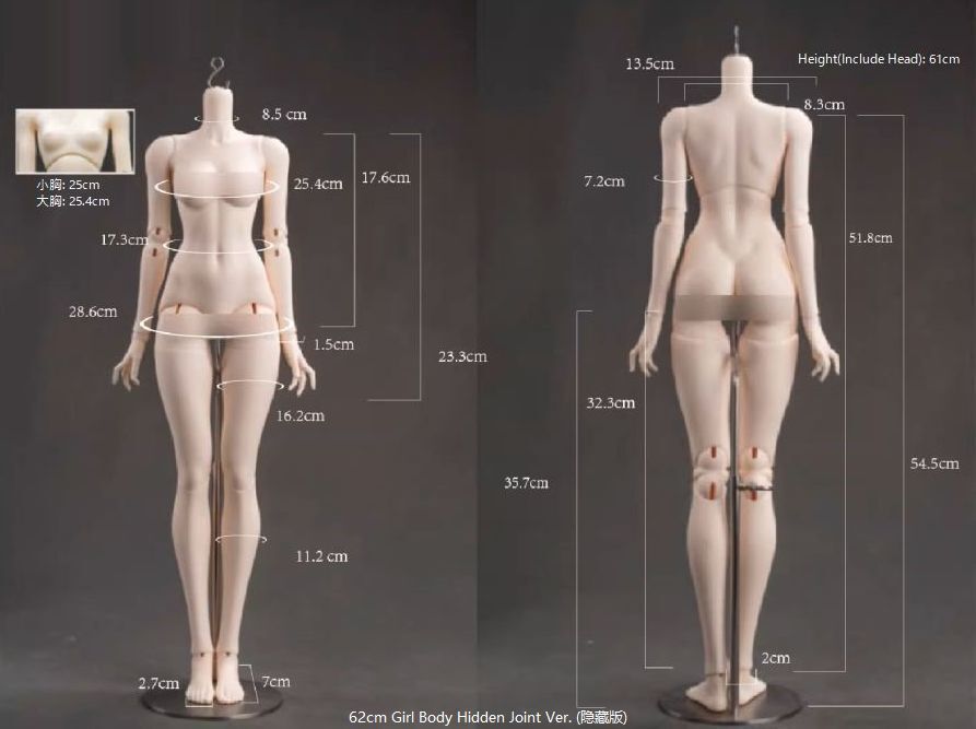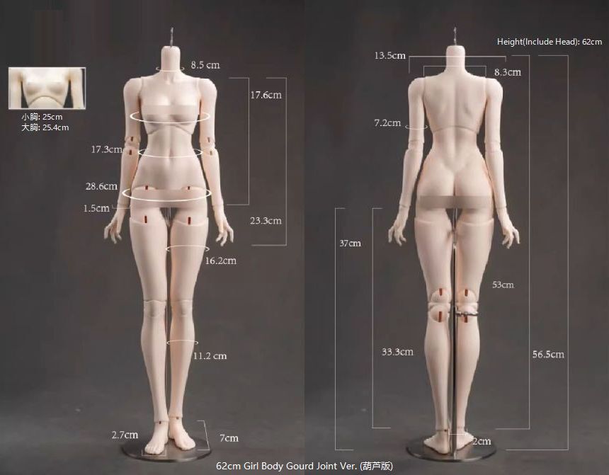 | 62 Girl's Body Fuashi Edition: Small Breasts | 62 | 22 | 8.5 | 13.5 | 25 | 17.3 | 28.6 | 17.6 | --- | 33.3 | 16.2 | 7 | 2.7 | 8~9 | 16 | |