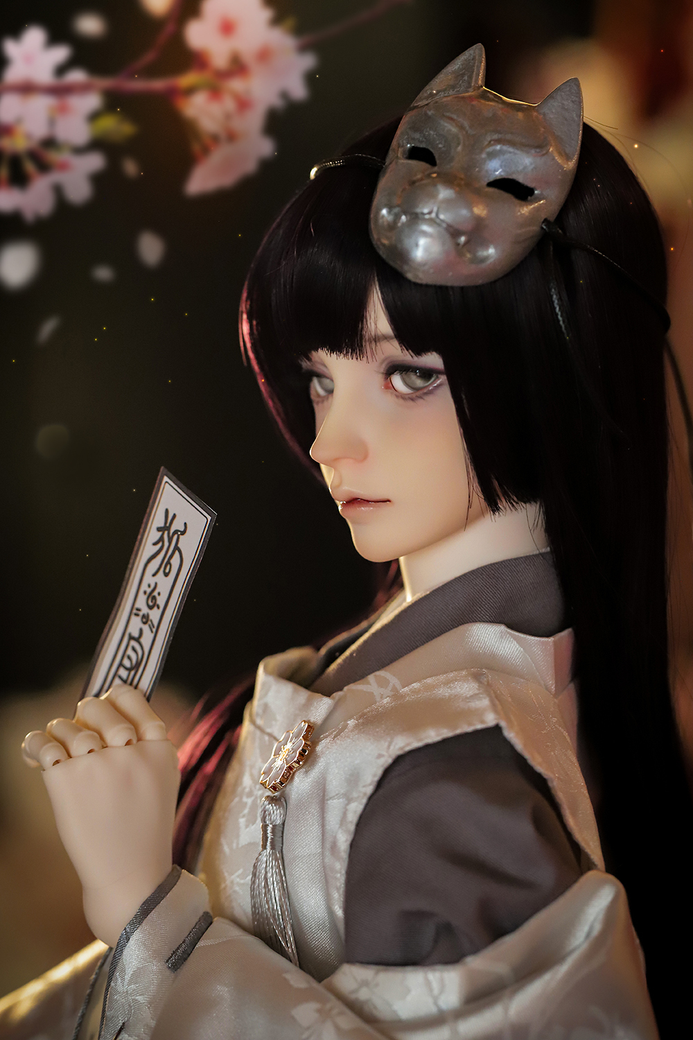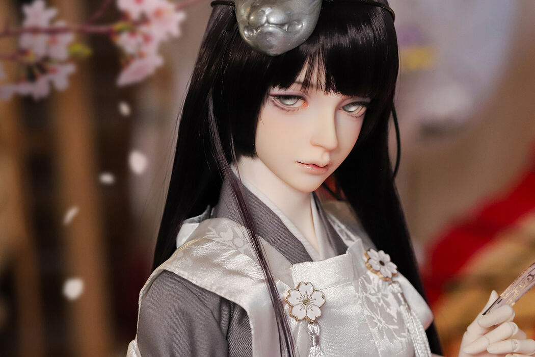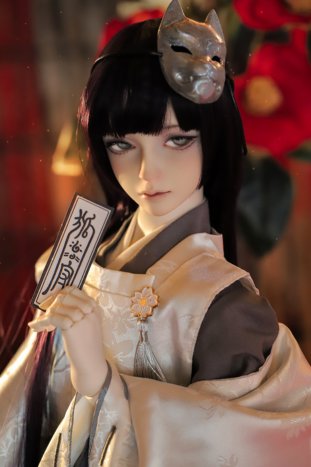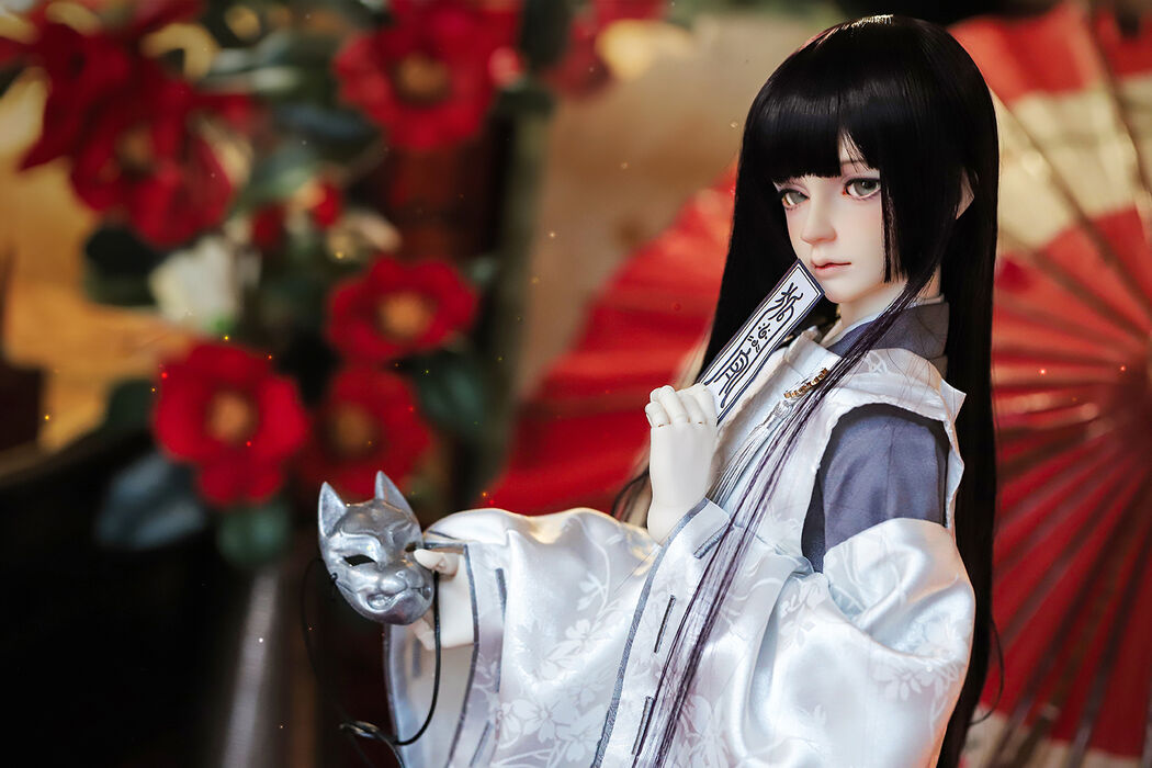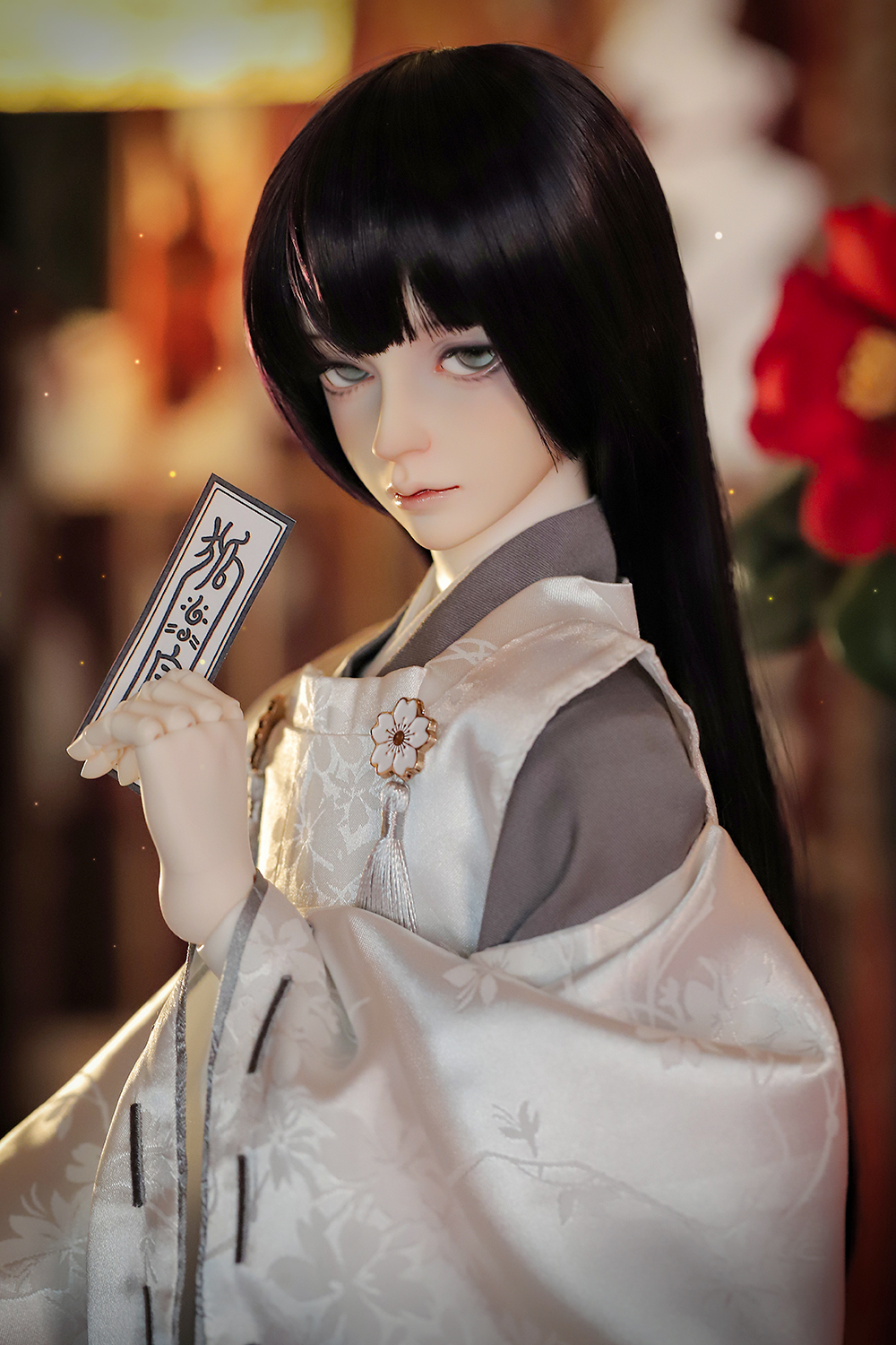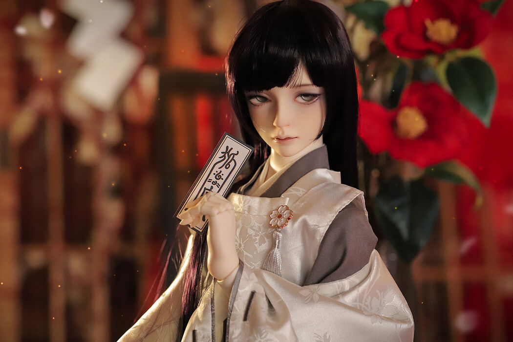 Verroky, the beautiful boy doll popular for his androgynous appearance, has been reborn as a modern-day onmyoji (exorcist) through collaboration with other artists, exuding a beautiful yet mysterious aura.