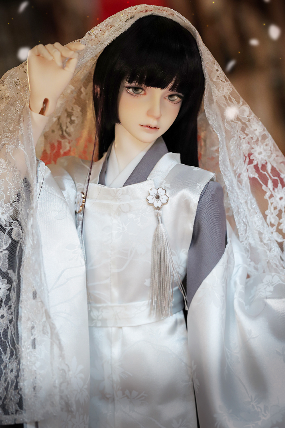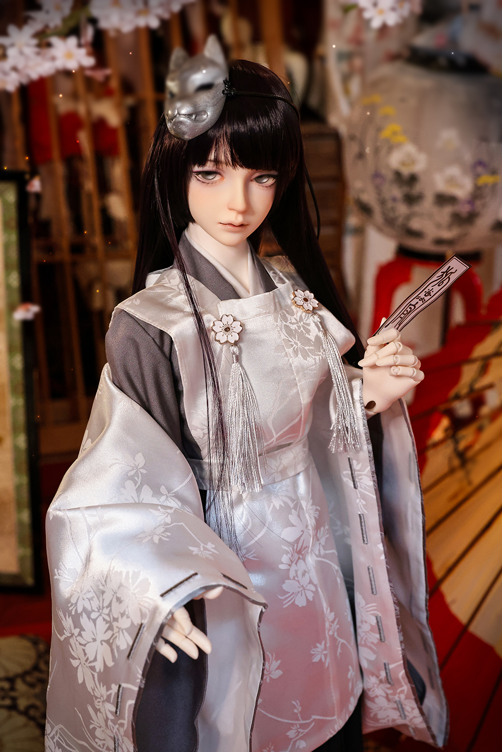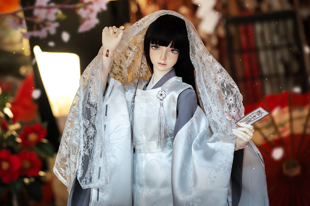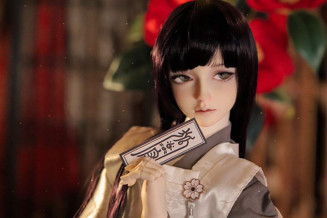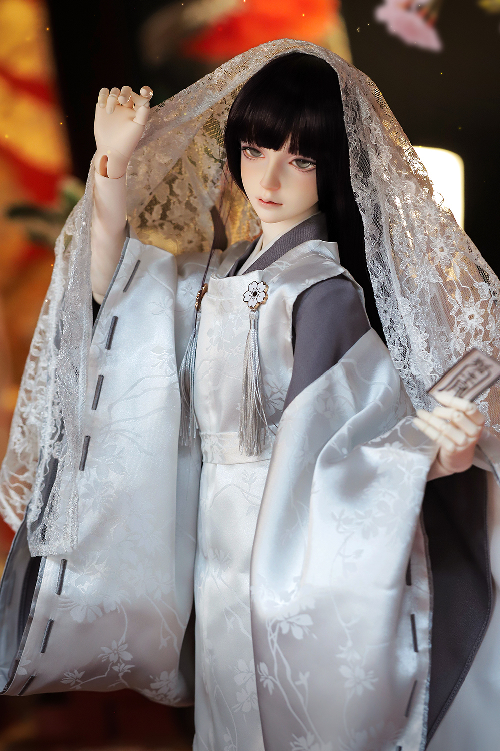 Verroky, the beautiful boy doll popular for his androgynous appearance, has been reborn as a modern-day onmyoji (exorcist) through collaboration with other artists, exuding a beautiful yet mysterious aura.