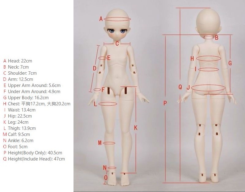 | 1/4 Girl: S (flat chest) | 47 | 22 | 7 | 7 | 17.2 | 13.4 | 22.5 | 12.5 | 4.9 | 24 | 13.9 | 5 | --- | 8~9 | --- | |