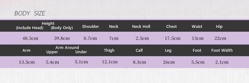 Note: All sizes are based on official maker data. Actual dolls and items may vary slightly due to individual differences.