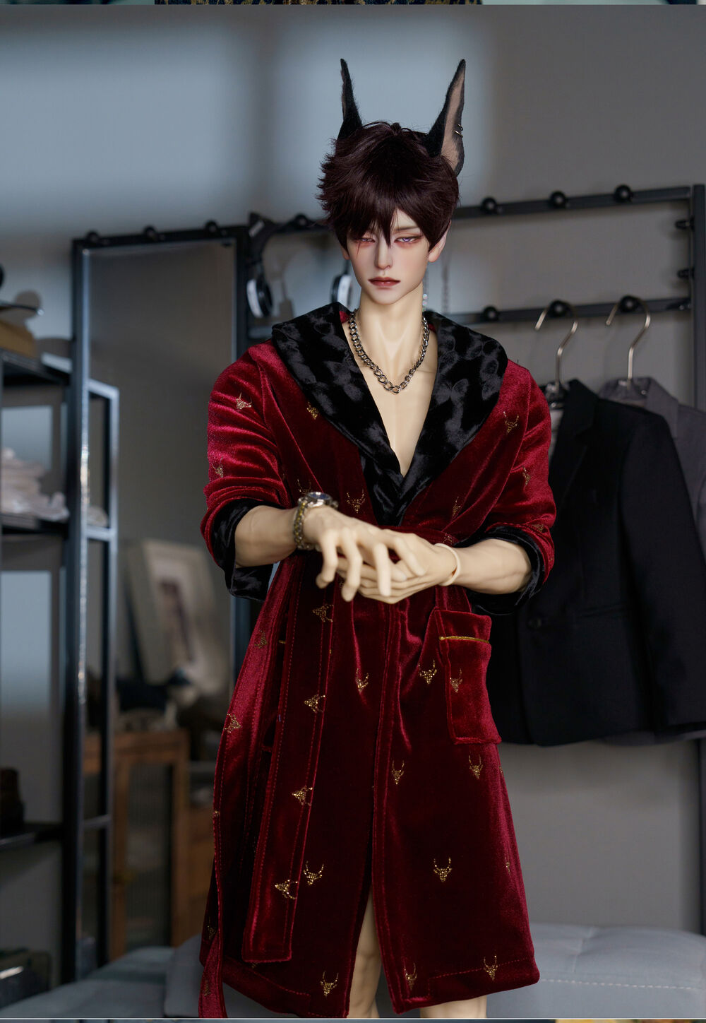 • Velvet bathrobe: Red x deer pattern (fits 70cm and 73cm)