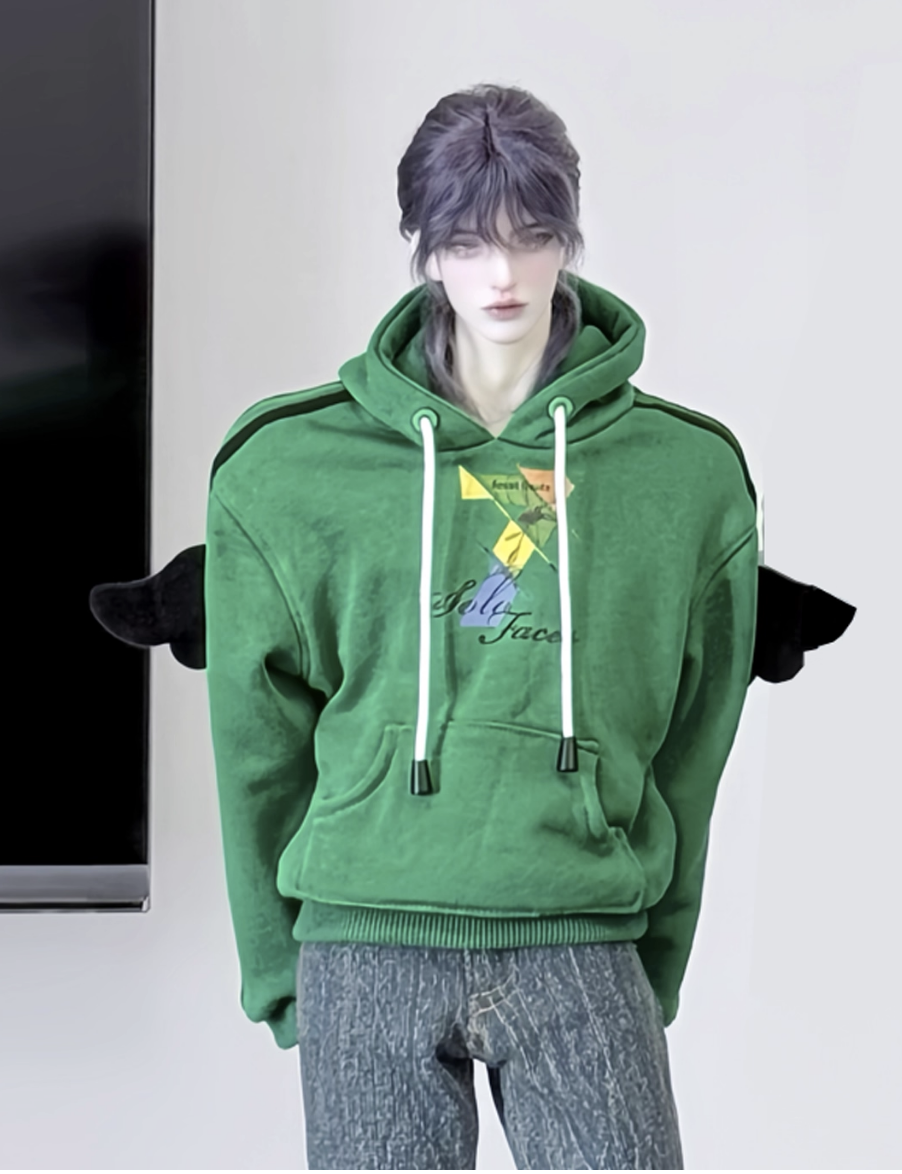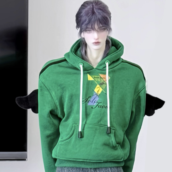 • Small feather design Hoodie: green (fits 70cm and 73cm)