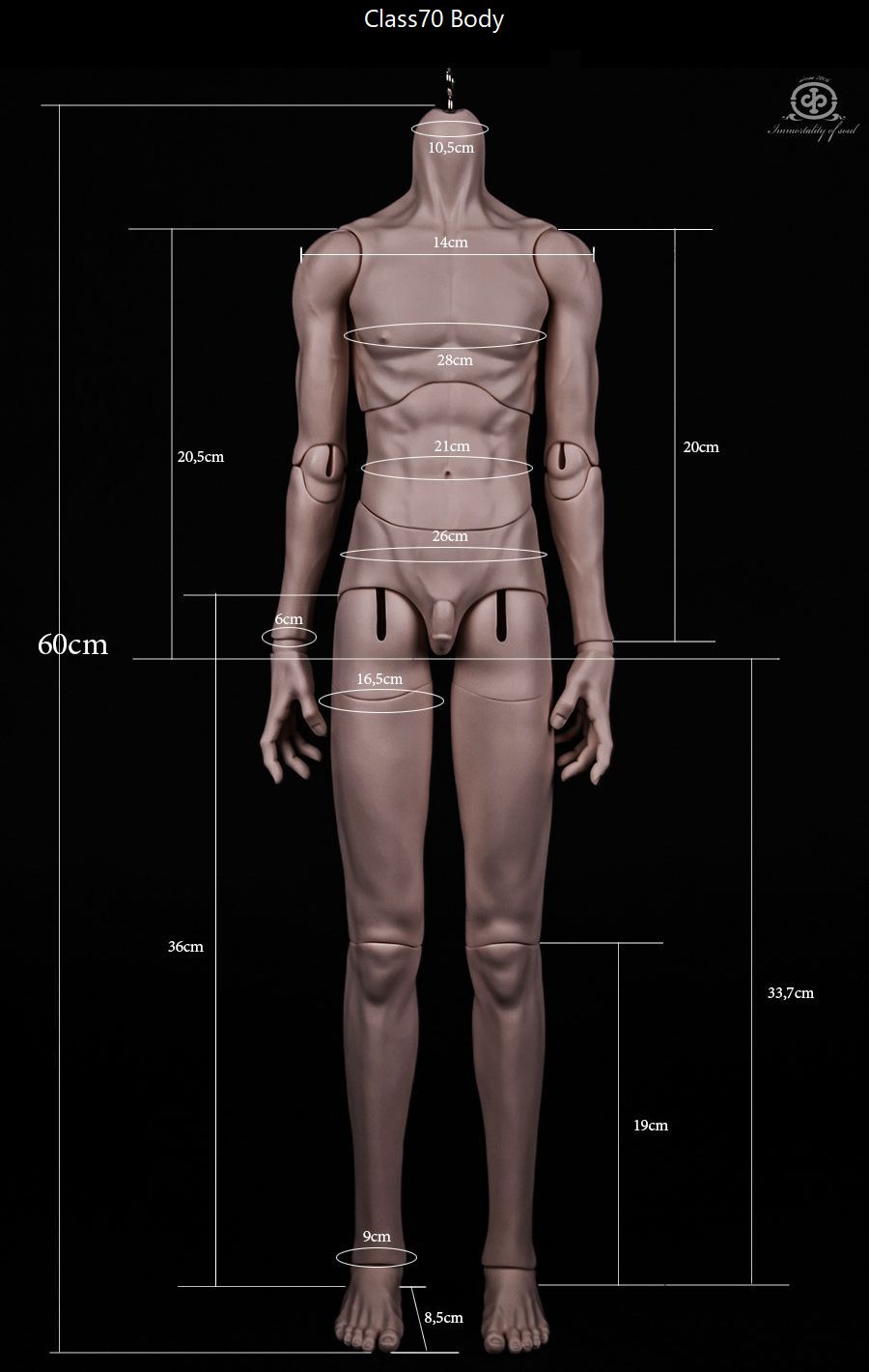 ドール本体、またはモデルドール、または商品のサイズ情報が表示されます。