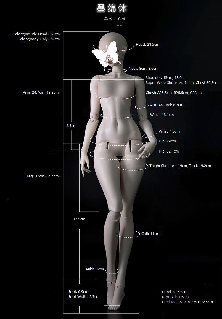 | 1/3 Girl(墨绵体): Standard, B胸 | 63 | 21.5 | 8 | 13 | 26.6 | 18.1 | 29 | 18.8 | 4.6 | 37 | 19 | 6.9 | 2.7 | 8~9 | 16 |