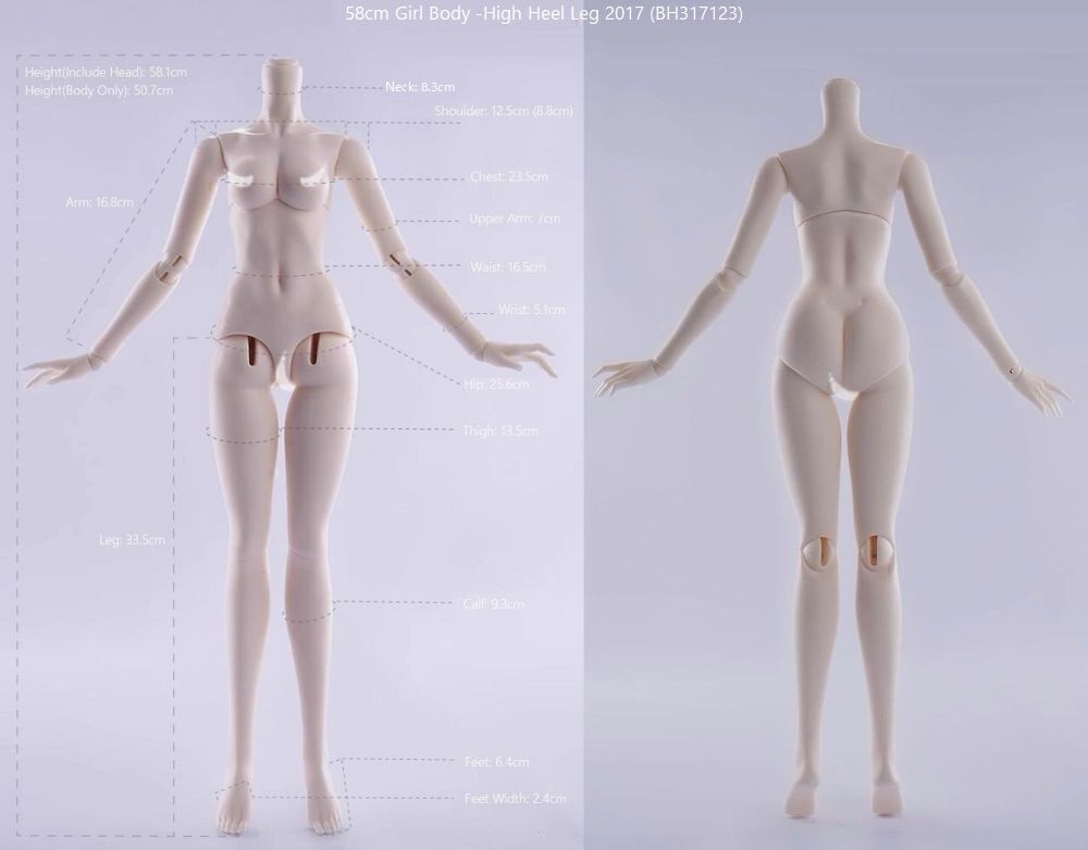 | 58cm Girl High Heel Leg & 普胸(2017): BH317123 | 58.1 | 22.5 | 8.3 | 12.5 | 23.5 | 16.5 | 25.6 | 16.8 | 5.1 | 33.5 | 13.5 | 6.4 | 2.4 | 8~9 | 16 | |