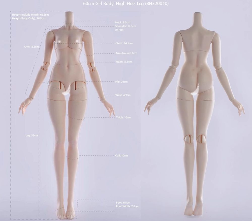 | 60cm Girl High Heel Leg & 普胸: BH320010 | 62.8 | 22 | 8.3 | 12.5 | 24.5 | 17.6 | 26 | 18.5 | 4.9 | 38 | 16 | 6.8 | 2.8 | 8~9 | 16 | |