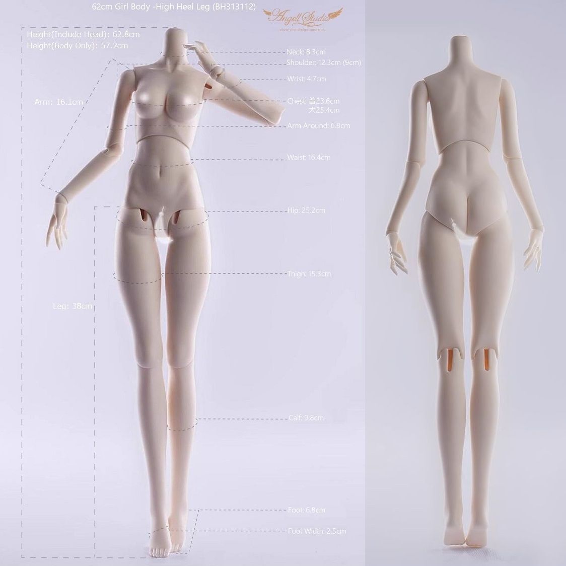 | 62cm Girl High Heel Leg & 普胸: BH313112 | 62.8 | 22.2 | 8.3 | 12.3 | 23.6 | 16.4 | 25.2 | 16.1 | 4.7 | 38 | 15.3 | 6.8 | 2.5 | 8~9 | 16 | |