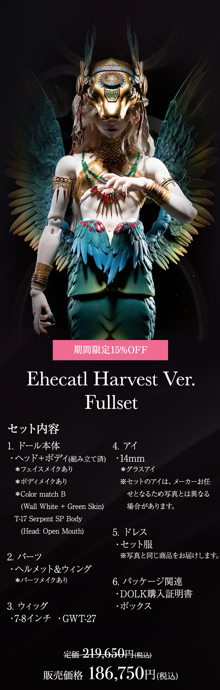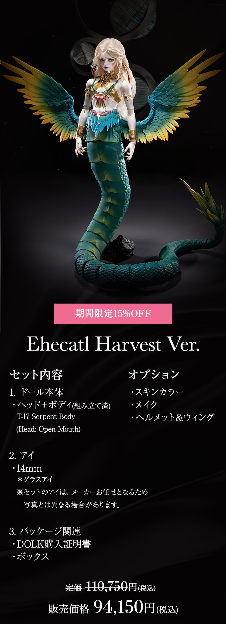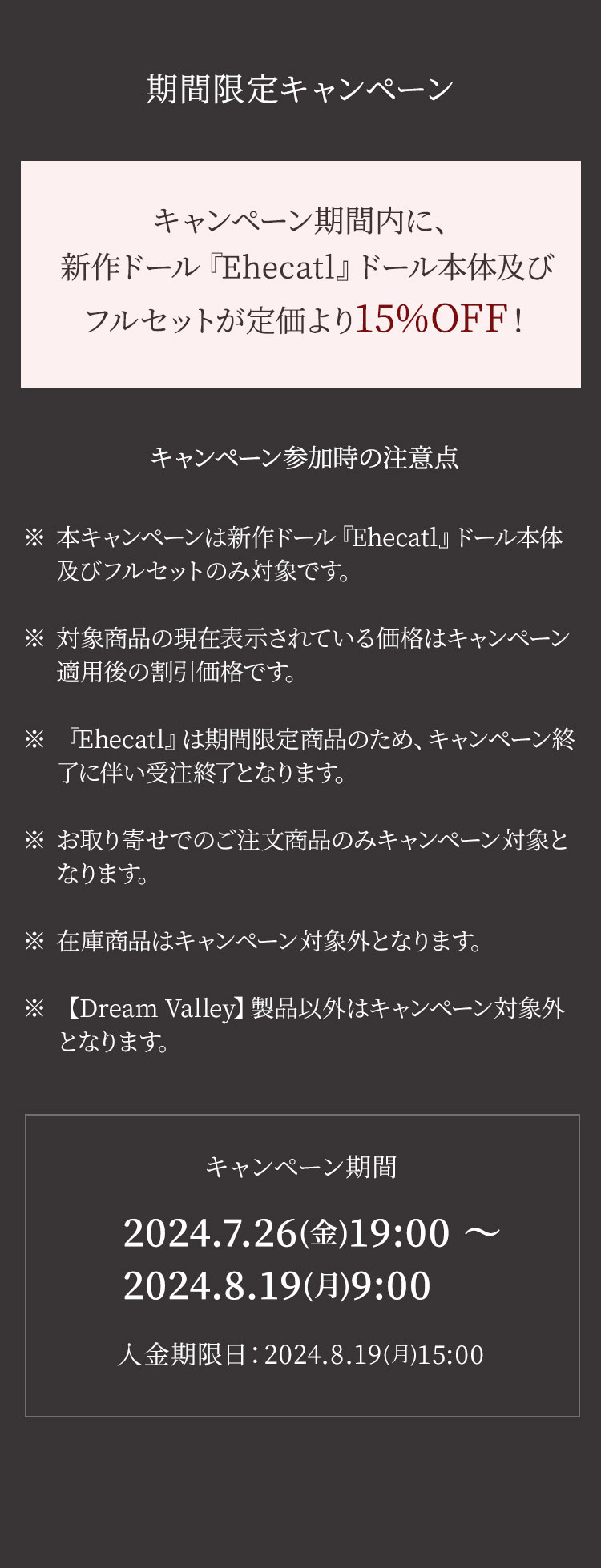 キャンペーン期間内に、新作ドール『Ehecatl』ドール本体及びフルセットが定価より【15%OFF】!