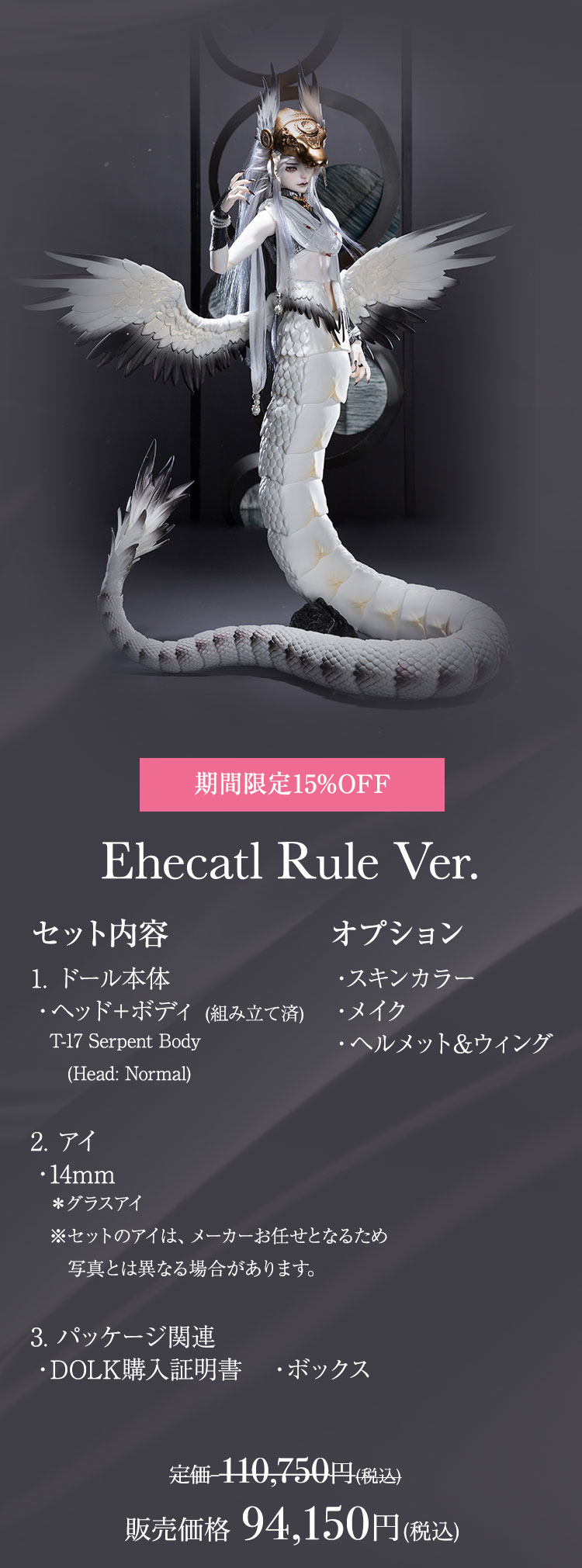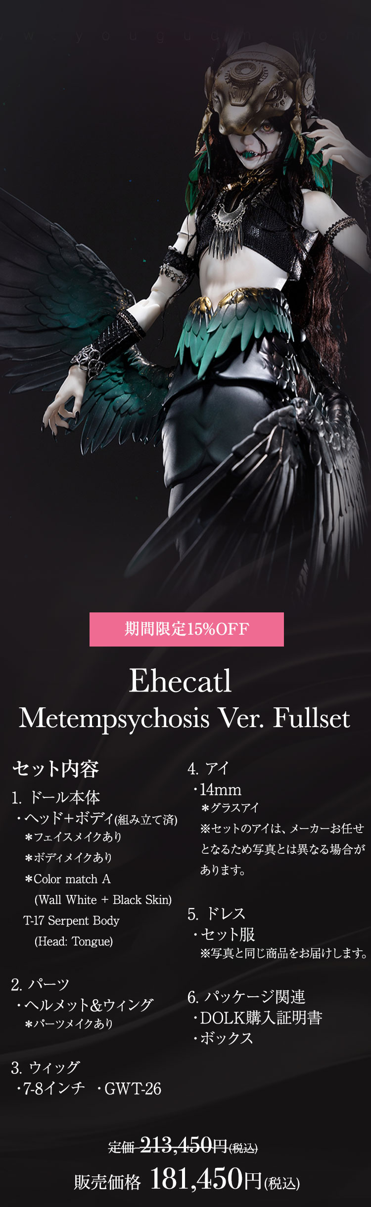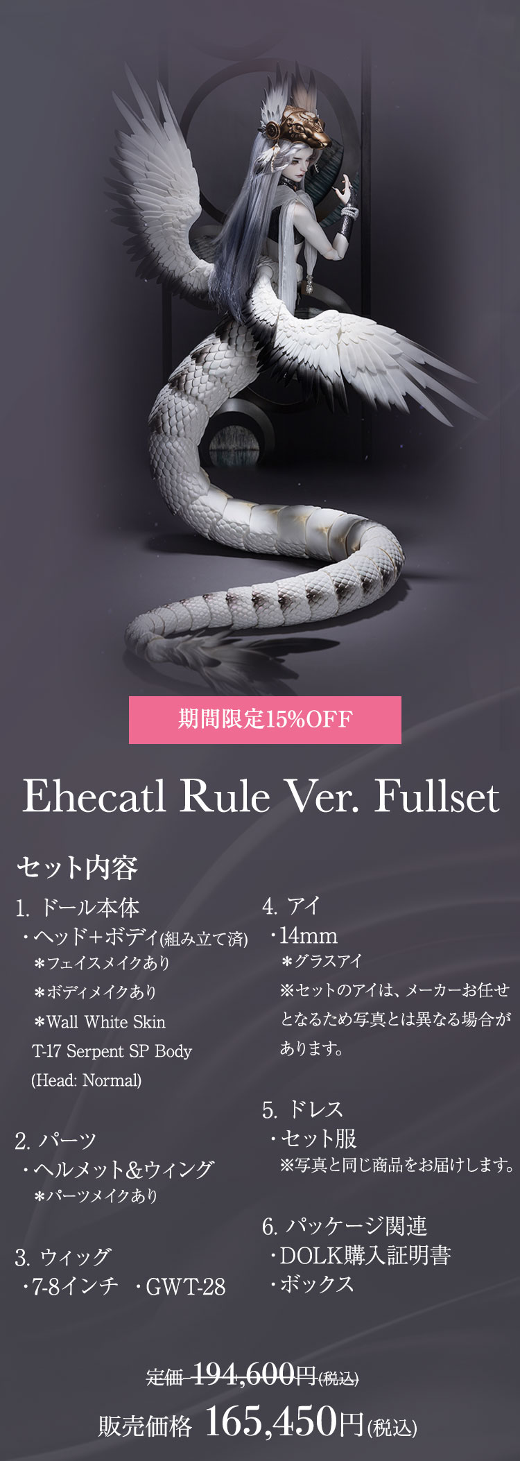 キャンペーン期間内に、新作ドール『Ehecatl』ドール本体及びフルセットが定価より【15%OFF】!