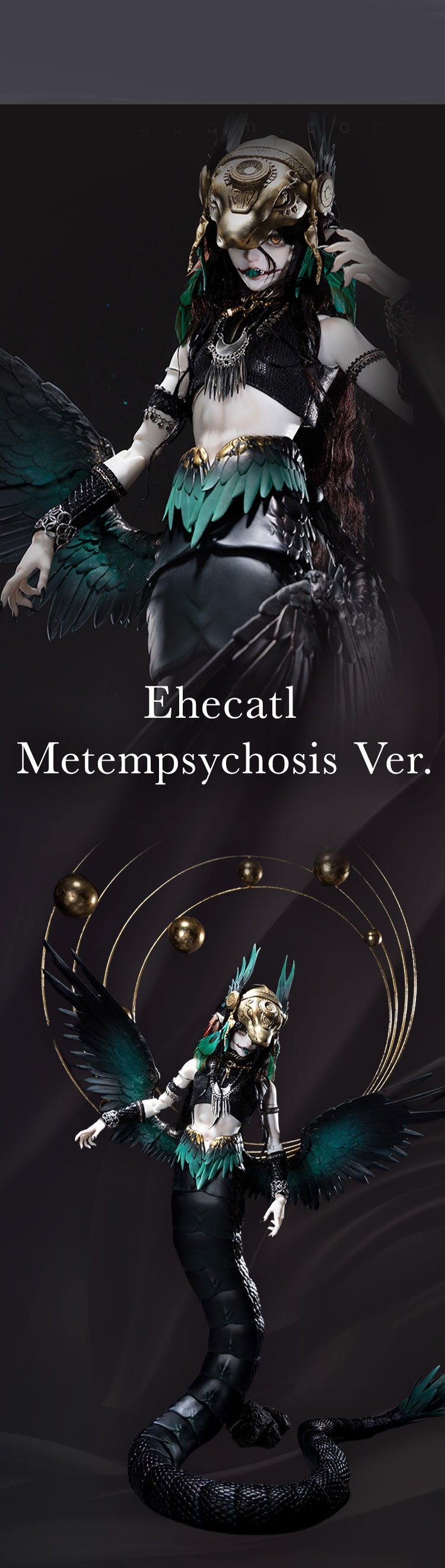 ケツァルコアトルとしてもその名が知られる『Ehecatl』。 神話のなかで『豊穣』『平和』『死と再生』の神として崇められる『Ehecatl』を 3つのコンセプトでドールとして立体化。 3種のヘッド限定メイク、ボディ&パーツメイク、アウトフィットで『Ehecatl』の持ちうる側面を見事に体現しています。 今なら新作『Ehecatl』リリースを記念して、 ドール本体とフルセットが15%OFFになるキャンペーンを開催中です。 キャンペーン&受注期間は8月19日まで。 神々しく確かな存在感を放つ『Ehecatl』をぜひお見逃しなく!