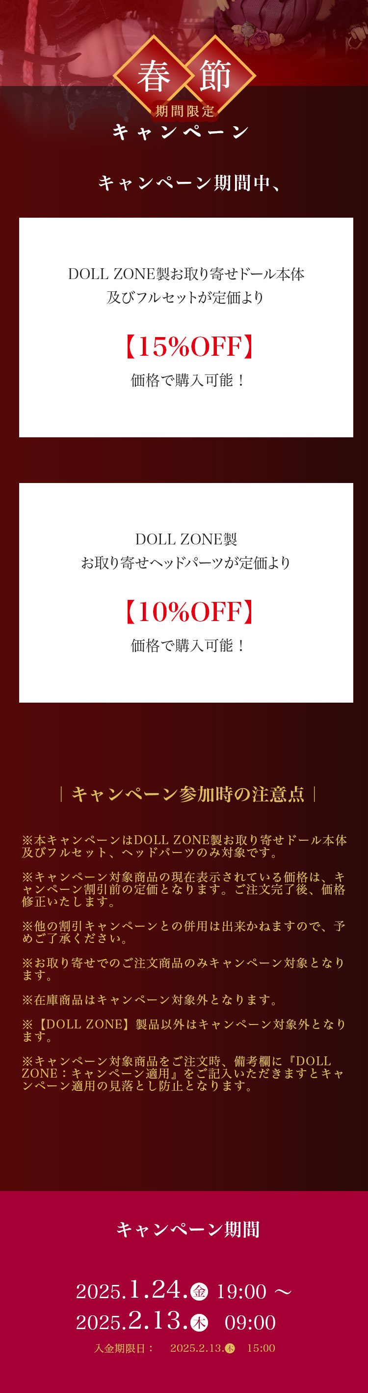 DOLL ZONE| 春節期間限定キャンペーンのお知らせ