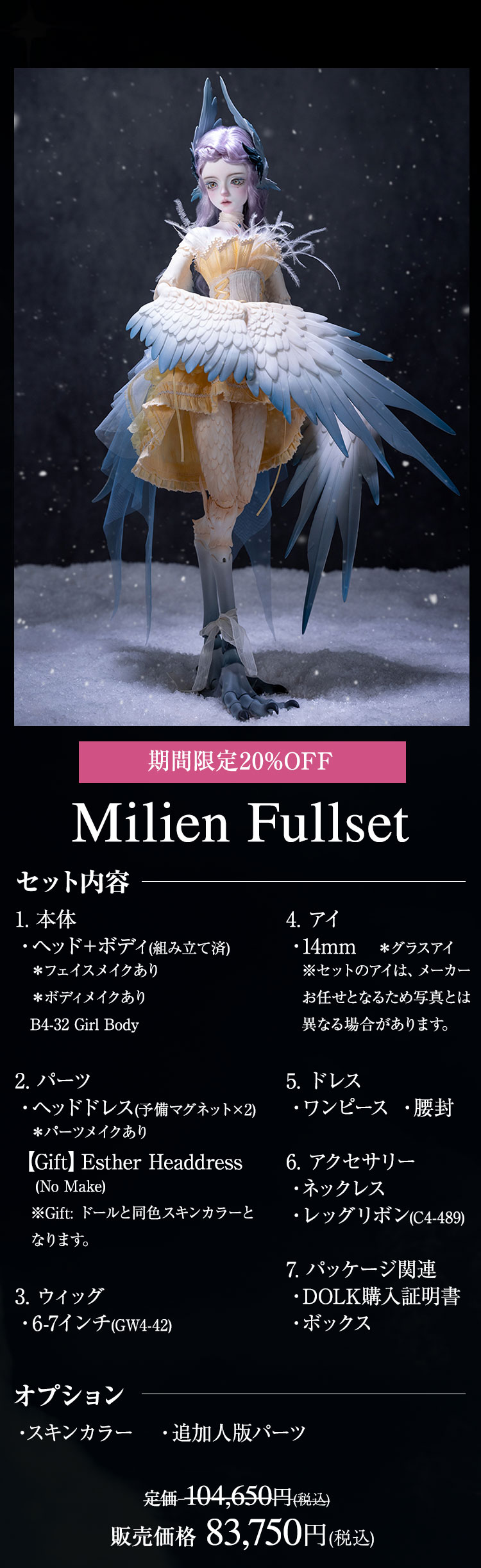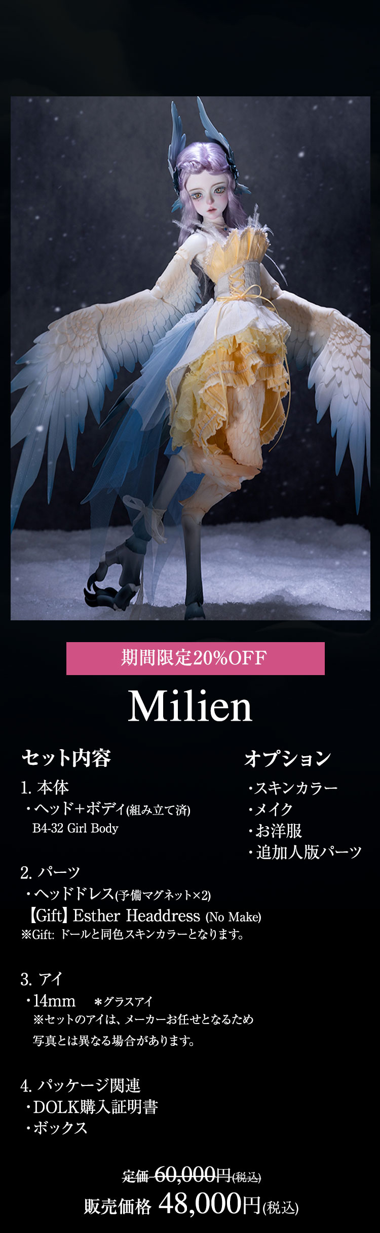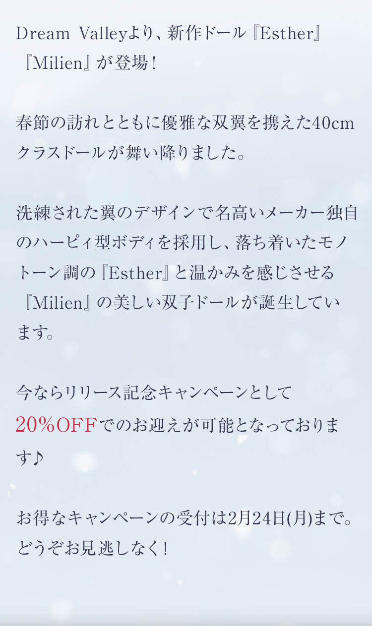 キャンペーン期間中に、『Esther』『Milien』ドール本体及びフルセットが定価より【20%OFF】!