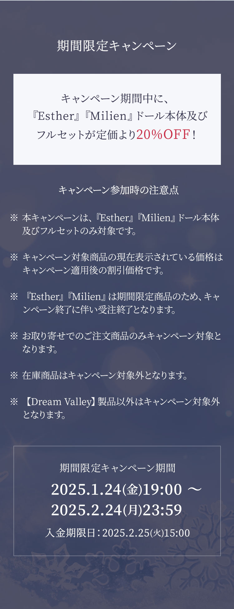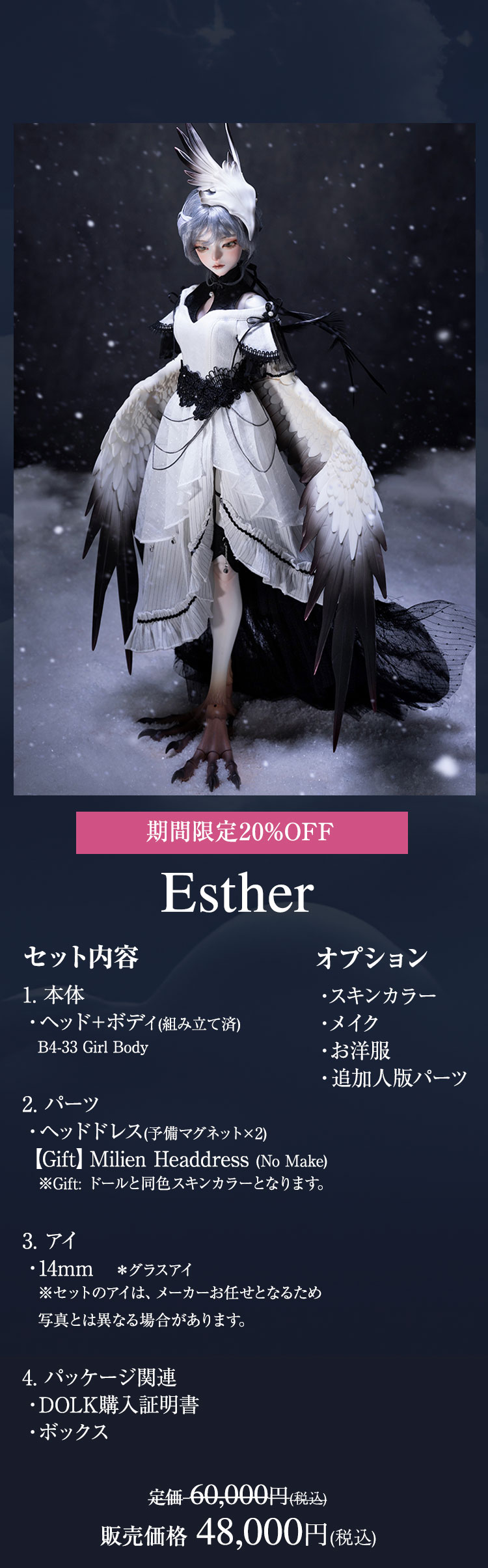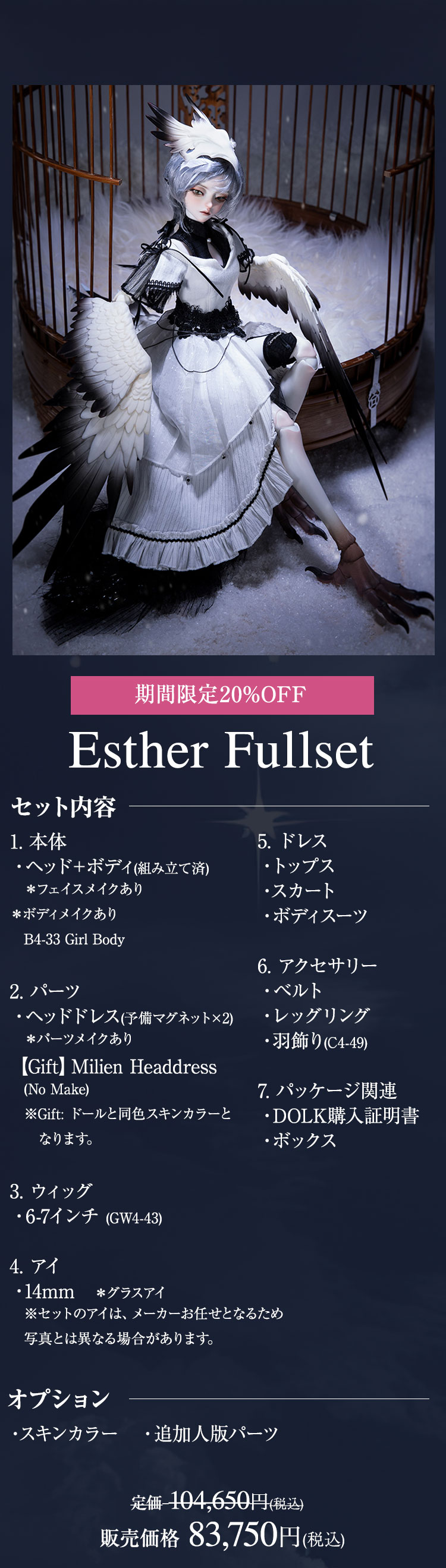 キャンペーン期間中に、『Esther』『Milien』ドール本体及びフルセットが定価より【20%OFF】!