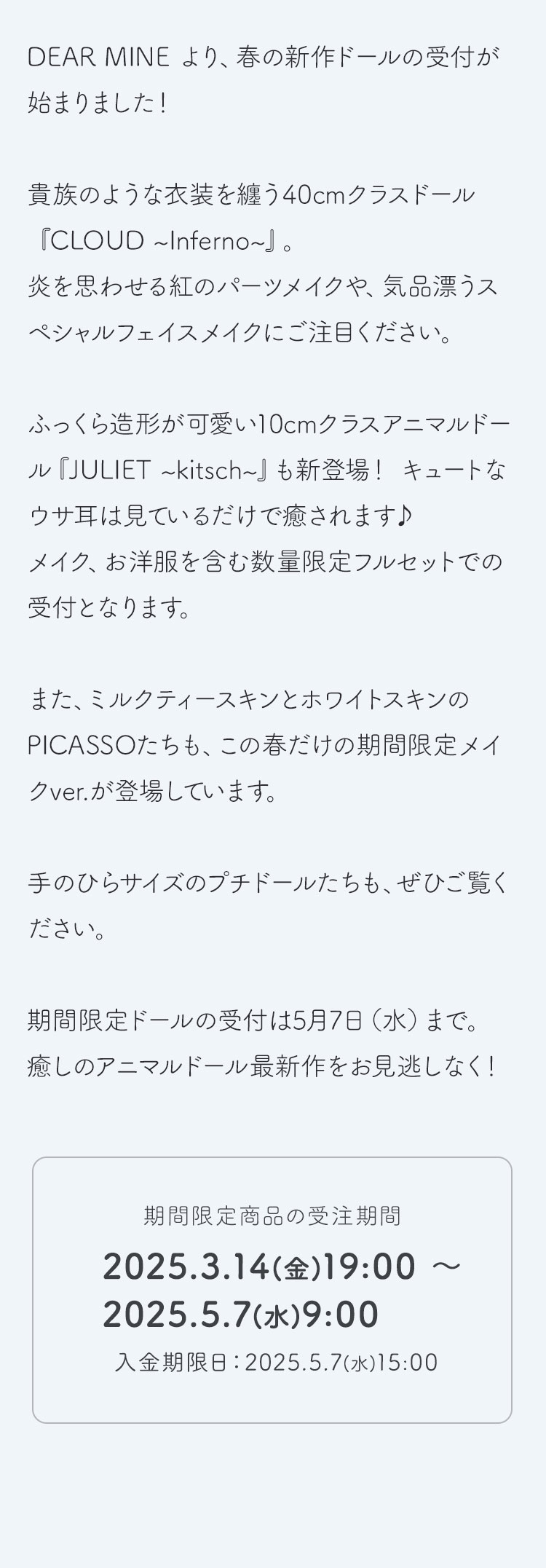 DEAR MINE より、春の新作ドールの受付が始まりました!