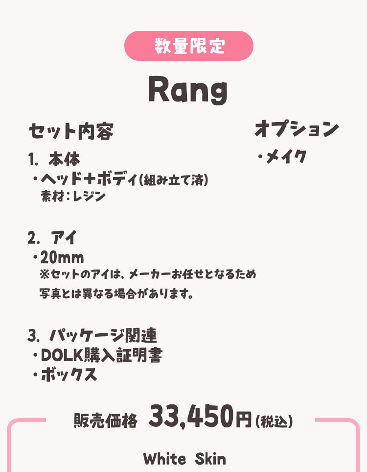 キラキラおめめに、もちもちほっぺ♪ 身長15cmの手のひらサイズでかわいさ爆発! 見てるだけで元気になれちゃう、アニメスタイルのドールが再登場。 ふわっとキュートなメイクはそれぞれ「Boy/Girl」の2種類からお選びいただけます。 準備数量が無くなり次第終了となりますので、 どうぞ早めにご覧ください!
