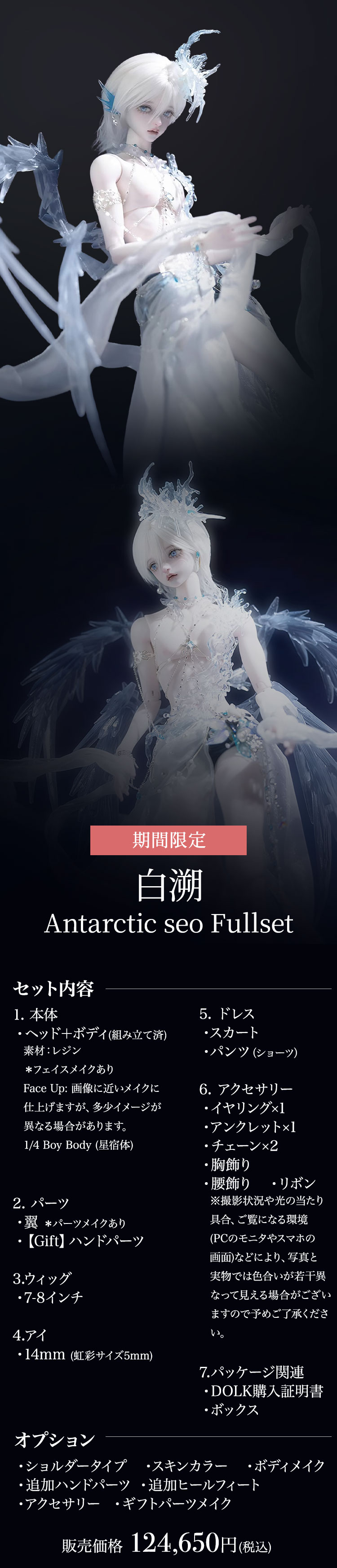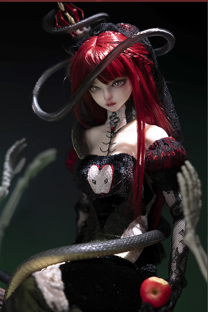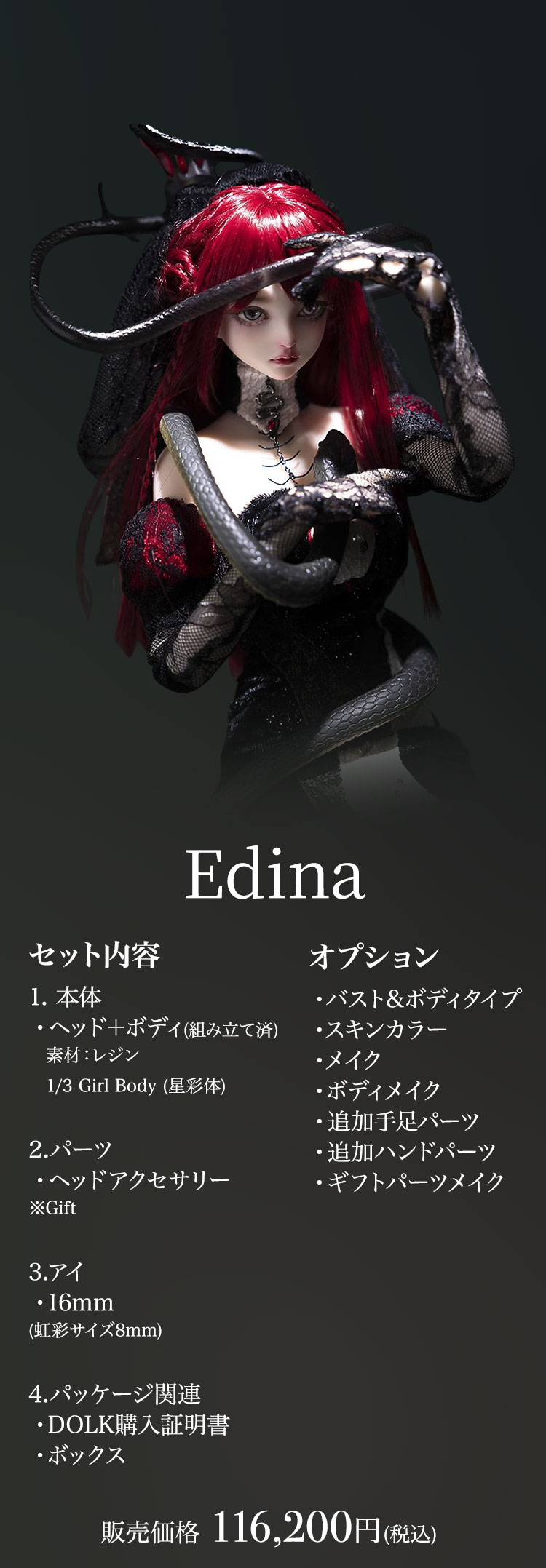 透きとおる肌、滴るような造形美、凍てついた輝きを宿す瞳。 氷の精が命を得たかのような、神秘的な50cmクラスドール『白溯』。 深紅の髪、漆黒の衣装、絡みつく蛇。 禁断の果実を差し出すのは、美しくも妖しいその瞳── 闇と誘惑を纏う幻想の60cmクラスドール『Edina』。 『白溯』の受注期間は6月29日(日)まで、 『Edina』フルセットの受注期間は5月25日(日)までとなります。 対照的な美しさの限定ドールたちを、ぜひお見逃しなく!