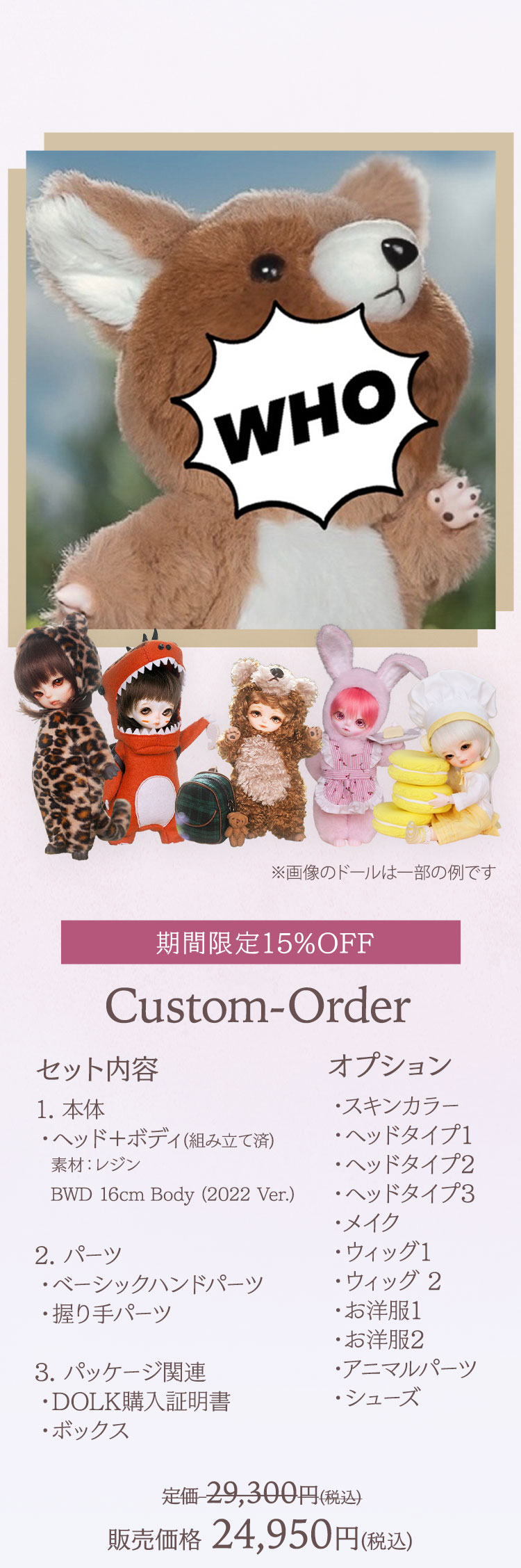 期間限定キャンペーン②:キャンペーン期間中に、 WITH DOLL 製お取り寄せドール本体及びボディパーツが定価より【15%OFF】!