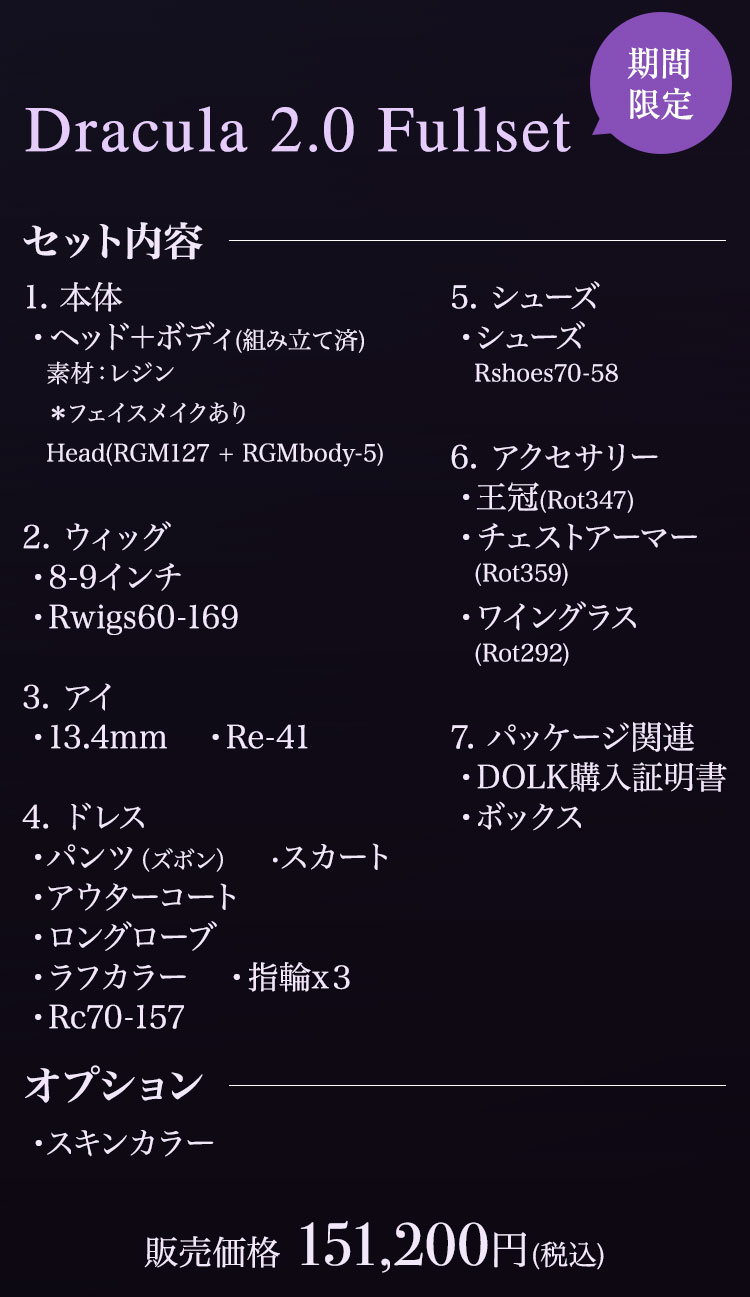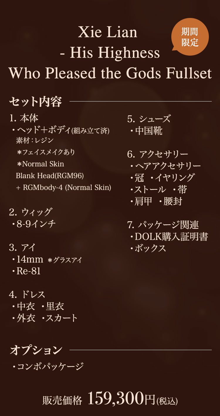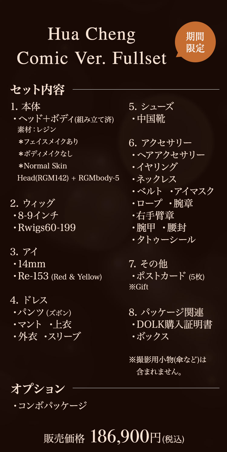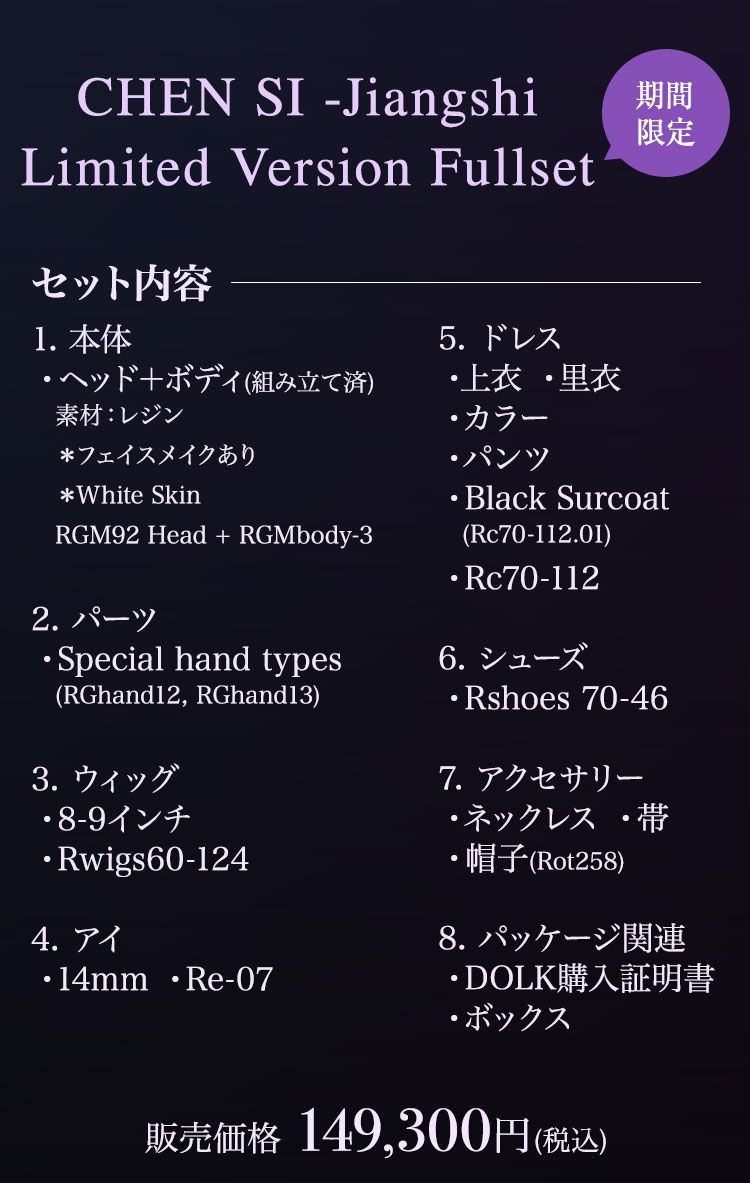 ハロウィンに映える、妖艶なオーラを放つ70cm級の3体のドールが期間限定再販。 人ならざる美貌と大きなエルフ耳が特徴の『Dracula 2.0』、 精巧な造りの六枚羽が印象的な『Fallen Angel Lucifer Limited Ver.』、 端正な黒装に白肌が際立つ美青年ドール『CHEN SI -Jiangshi Limited Version』。 3体のフルセットドールが、仮装の夜に光を灯します。 受注は、11/4(火)まで。 続いて、人気作品・天官赐福と魔道祖師シリーズから6体のコラボドールが期間限定復刻。 受注は11/13(木)までとなっております。 この機会に美麗なドールたちをぜひご覧ください。