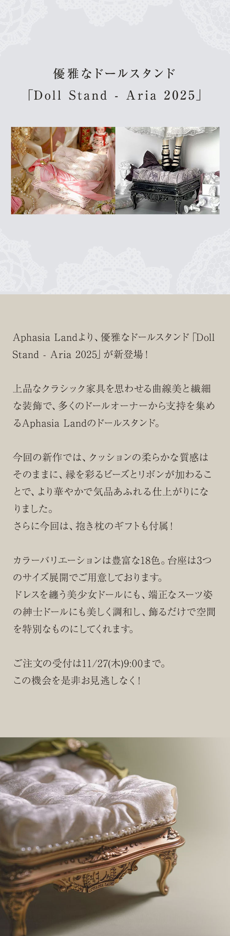 Aphasia Landより、優雅なドールスタンド「Doll Stand - Aria 2025」が新登場!