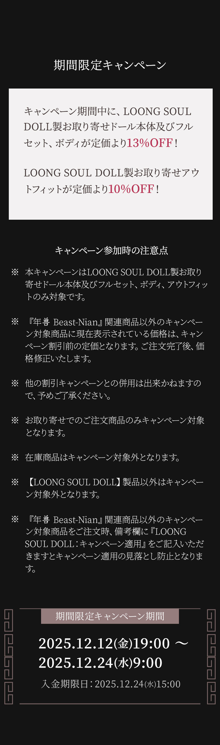 LOONG SOUL DOLL 期間限定キャンペーンのお知らせ