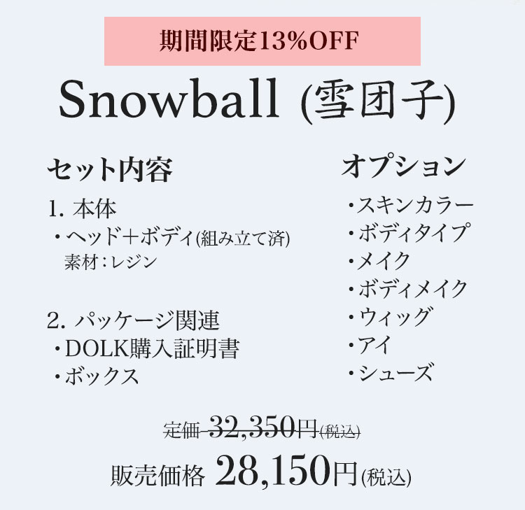 キャンペーン期間中に、LOONG SOUL DOLL製お取り寄せドール本体及びフルセット、ボディが定価より【13%OFF】! LOONG SOUL DOLL製お取り寄せアウトフィットが定価より【10%OFF】!