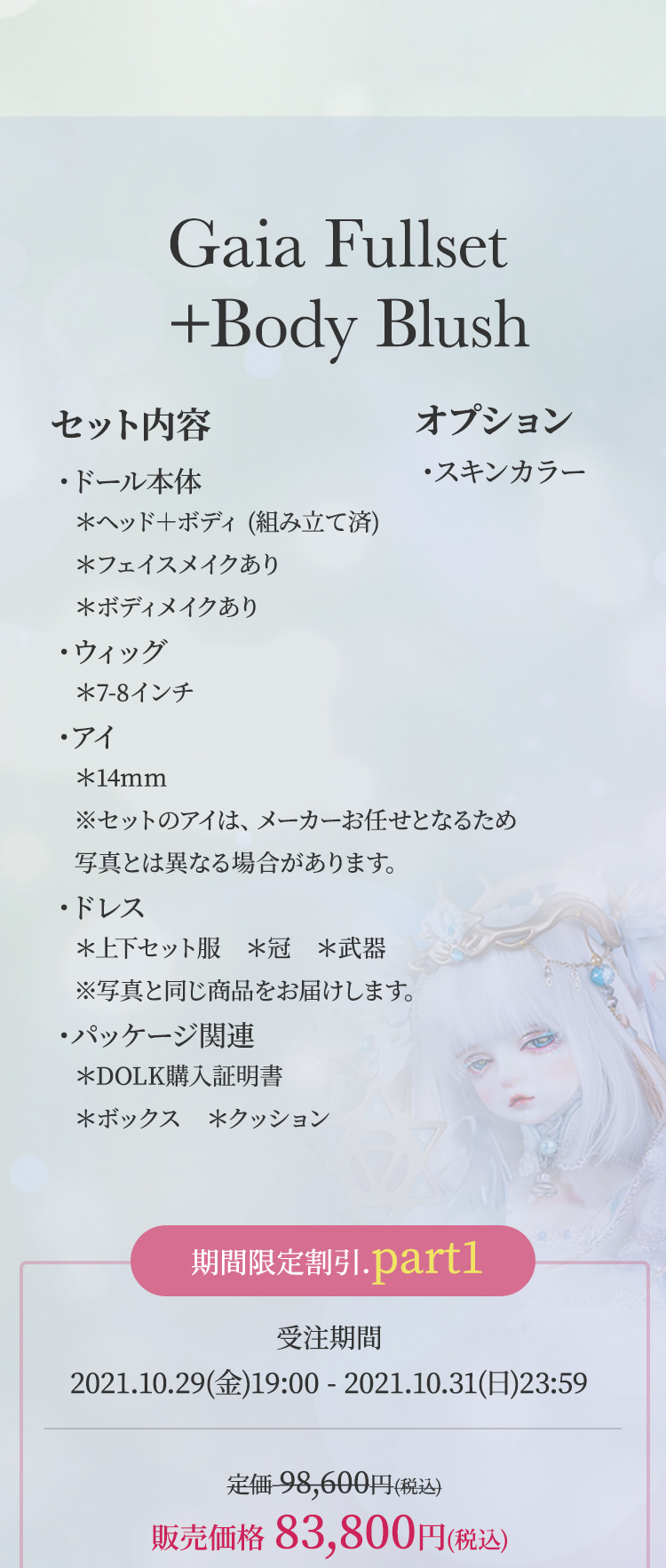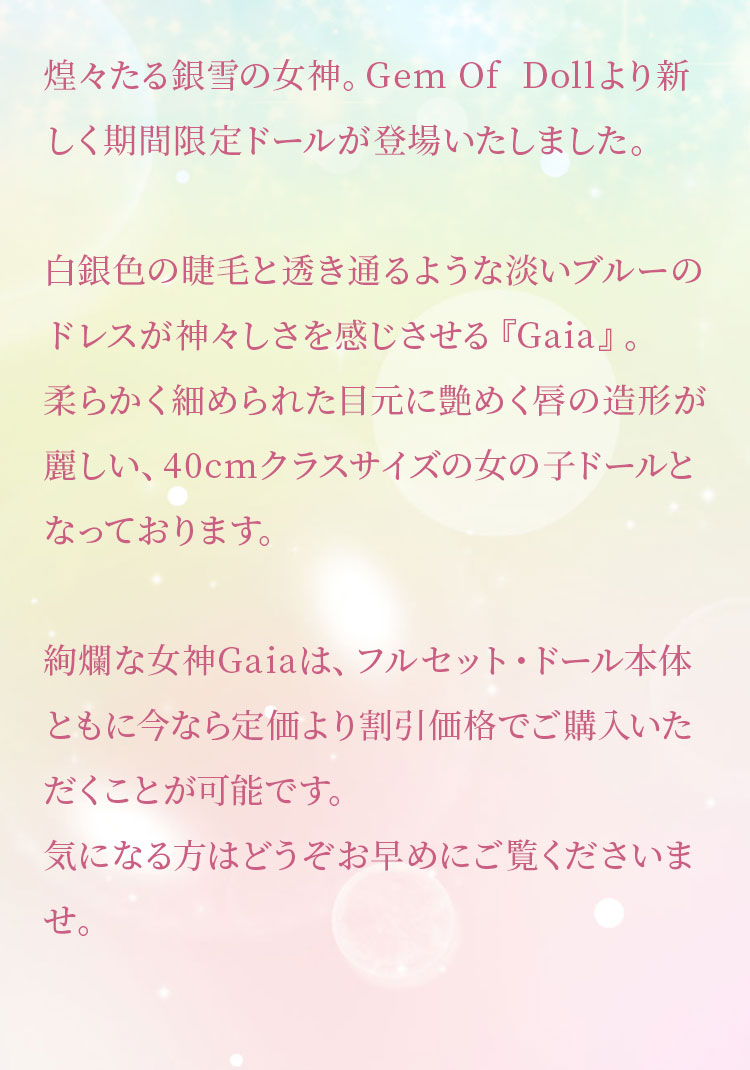 キャンペーン期間内に、新作『Gaia』のフルセット、ドール本体セットのいずれかをご購入で、定価より割引価格に!