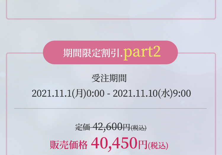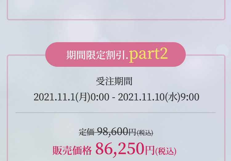 期間限定割引キャンペーンpart2.受注期間:2021.11.1(月) 0:00〜2021.11.10(水) 9:00
