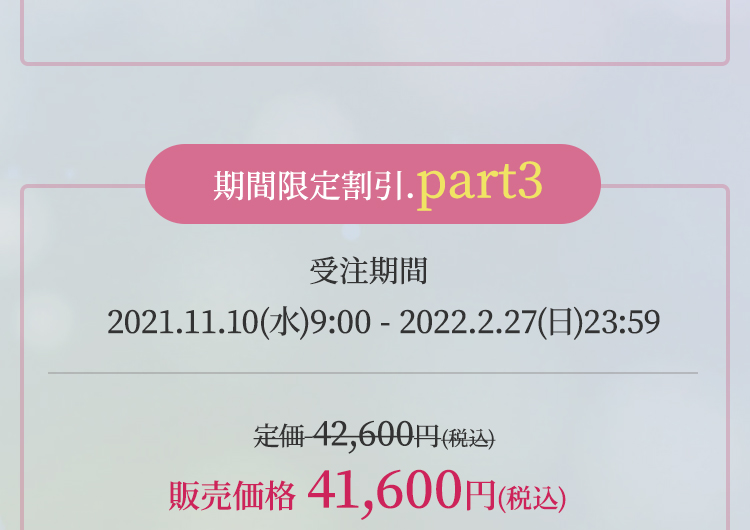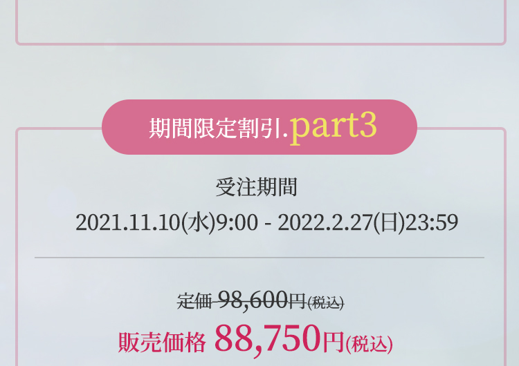 期間限定割引キャンペーンpart3.受注期間:2021.11.10(水) 〜2022.2.27(日) 23:59